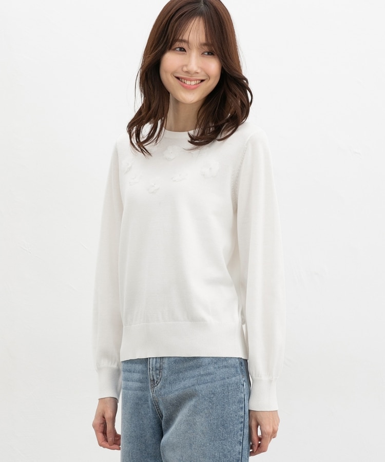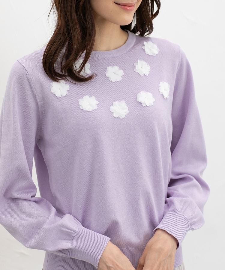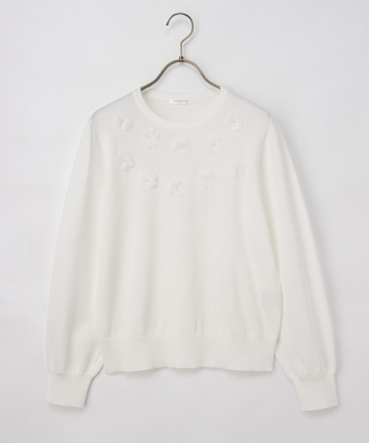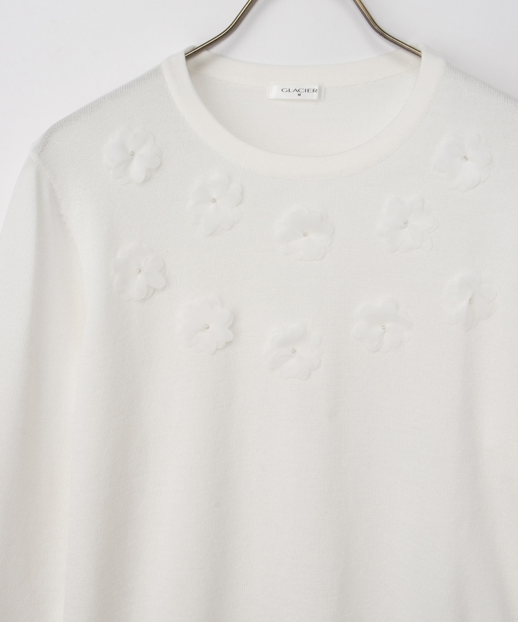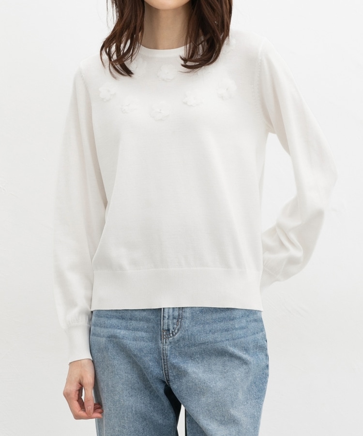 立体感のあるフラワーモチーフが高見えする、1枚でコーデが決まるデザイン。