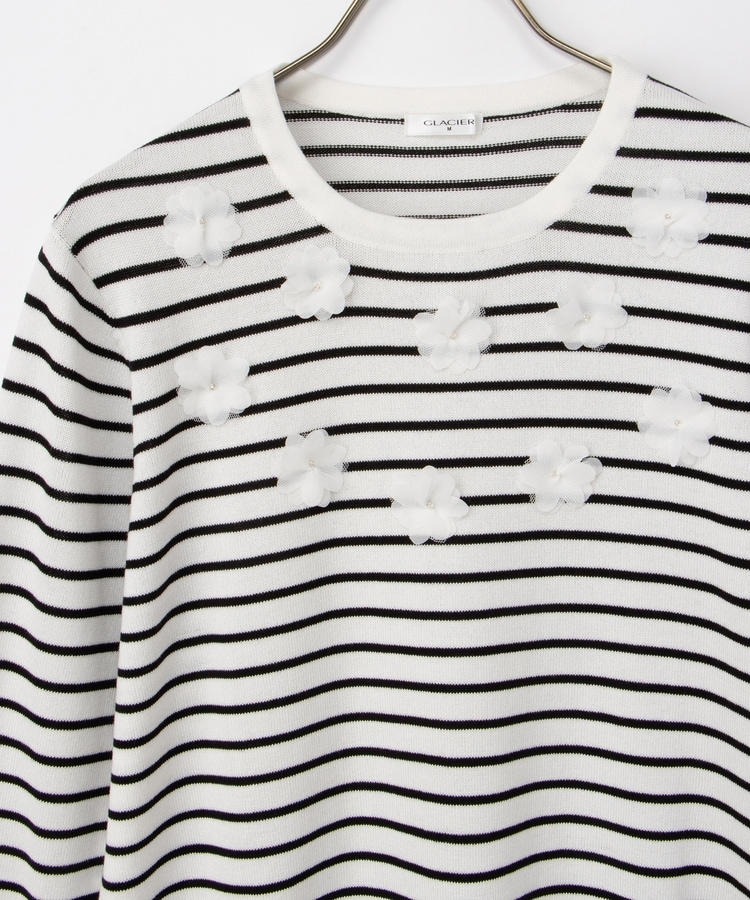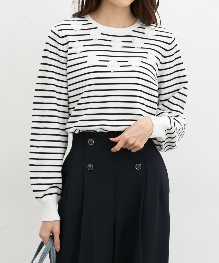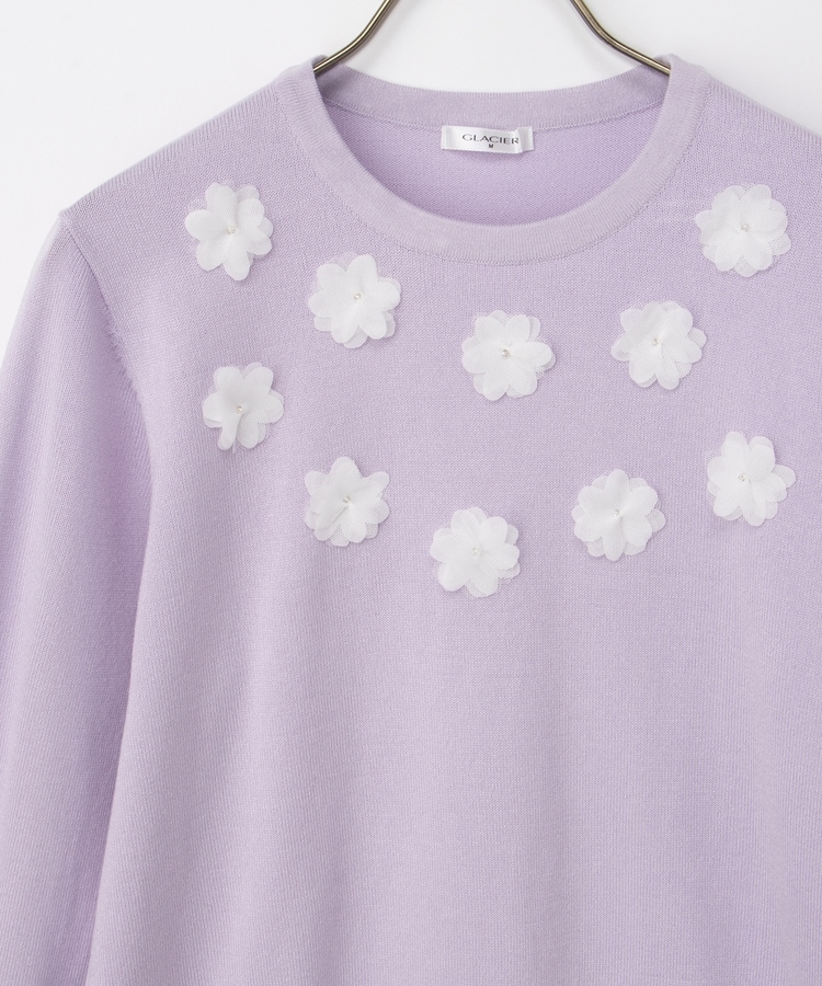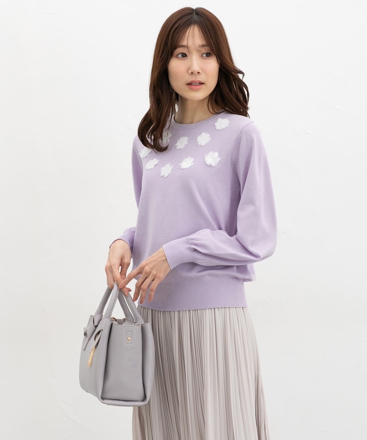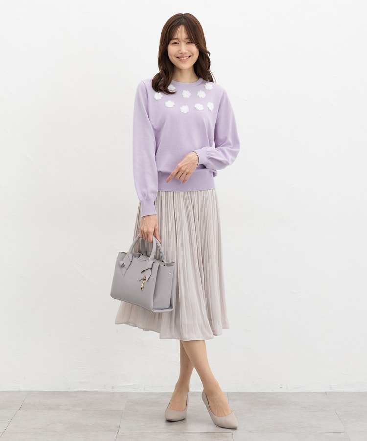 立体感のあるフラワーモチーフが高見えする、1枚でコーデが決まるデザイン。