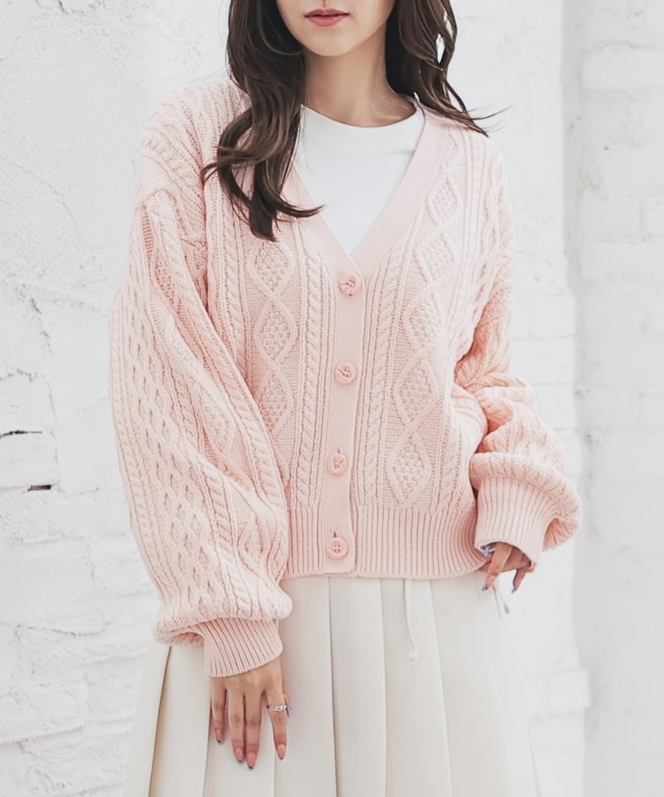 ケーブル編Vカーディガン