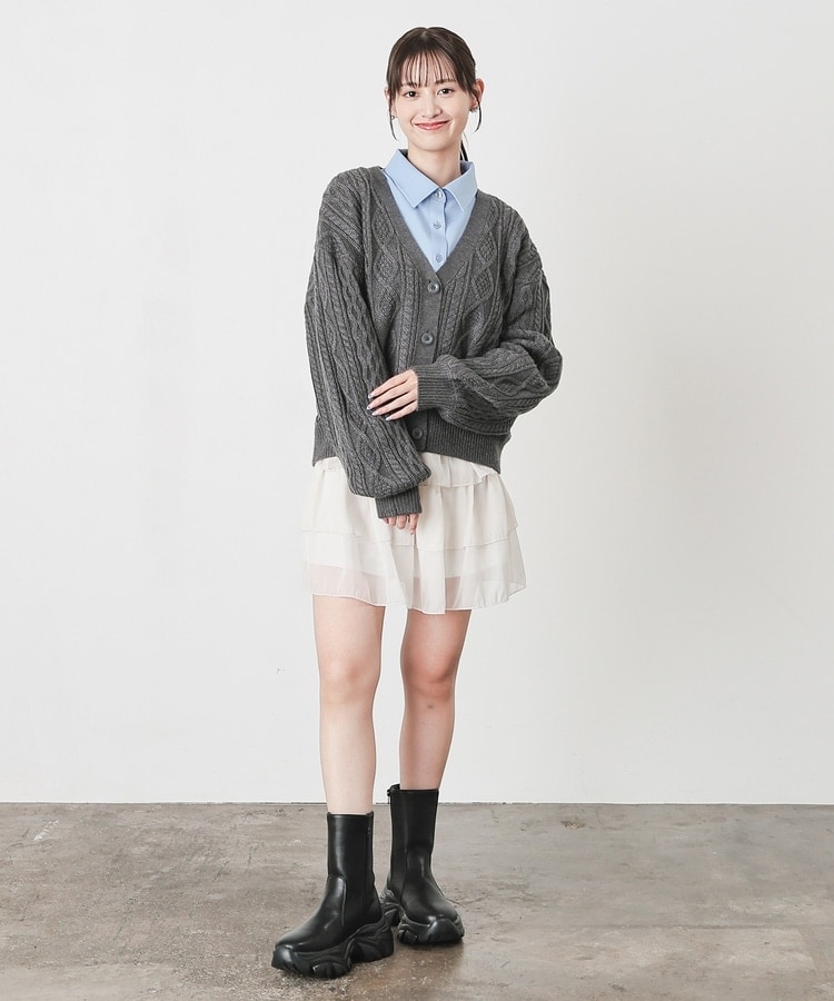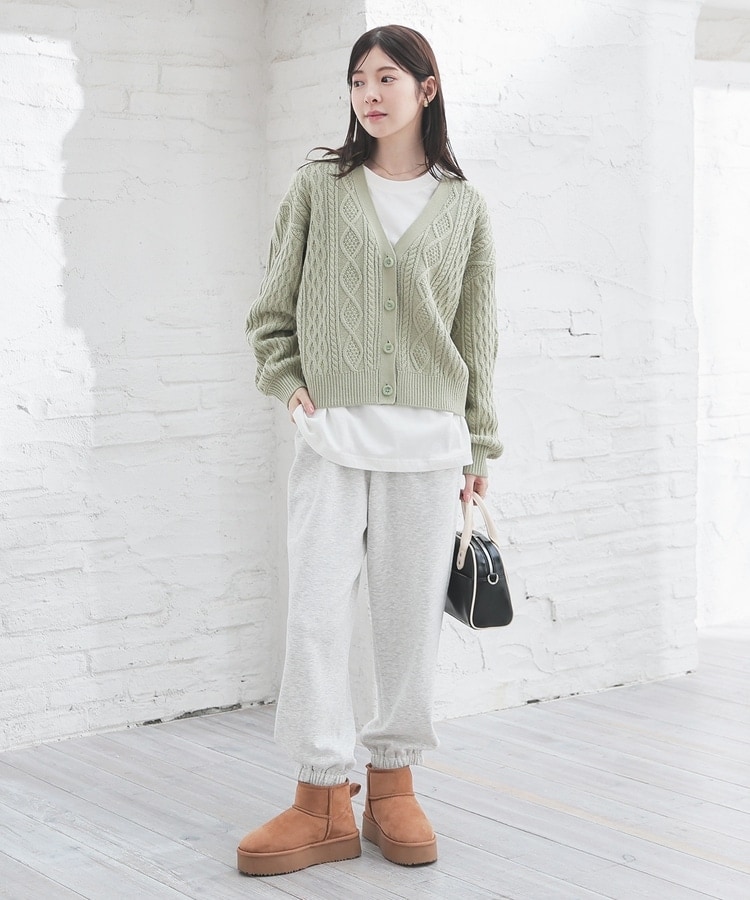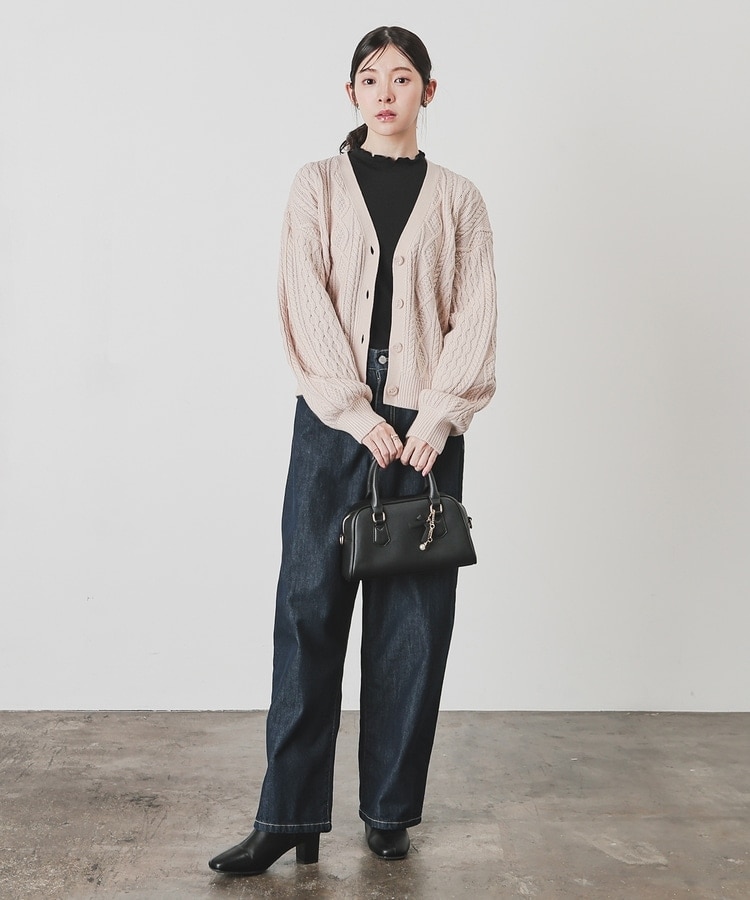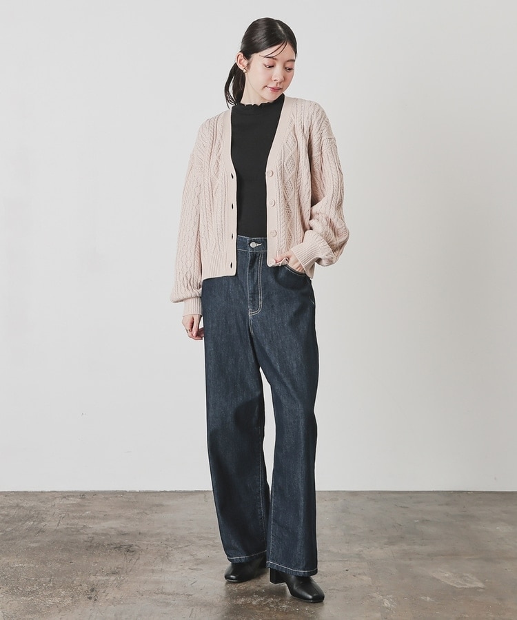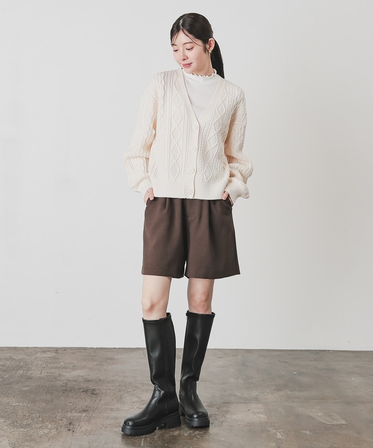 アウターを着る前の肌寒い季節にも活躍する、程よい厚みで立体感のあるケーブル編みニット素材。
