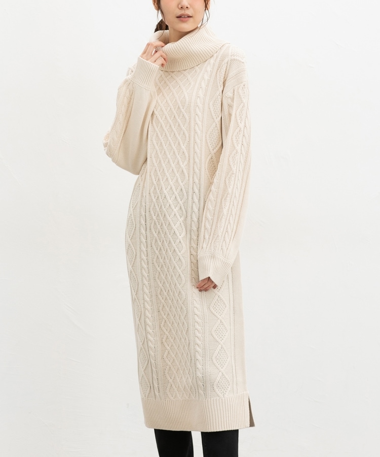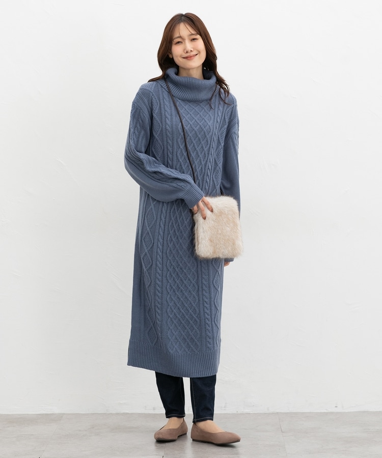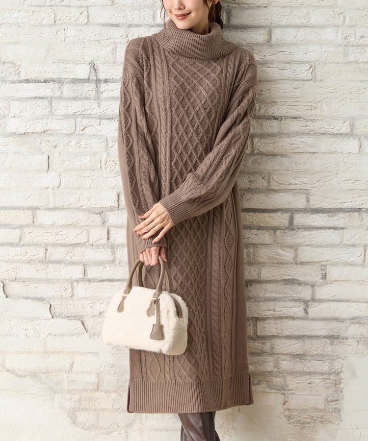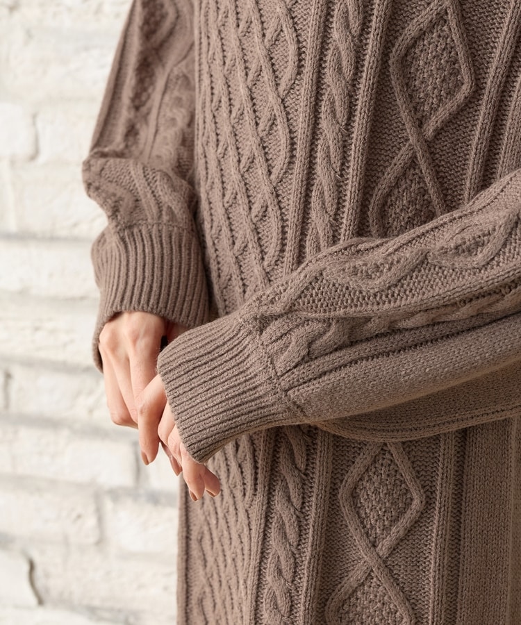 温もりあふれるケーブル編みが大人可愛いデザイン。