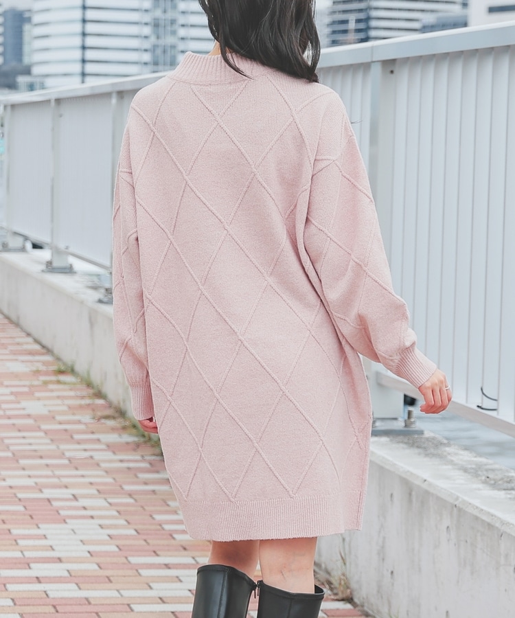 環境に優しい再生ポリエステルを使用した、柔らかな肌触りのダイヤ編みニット素材。