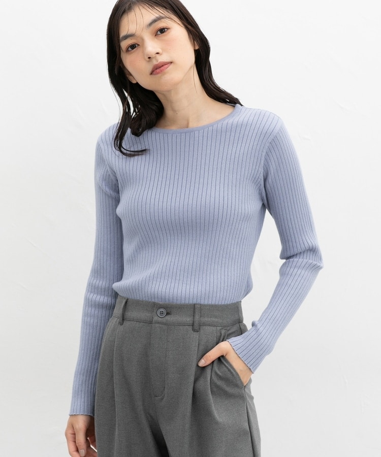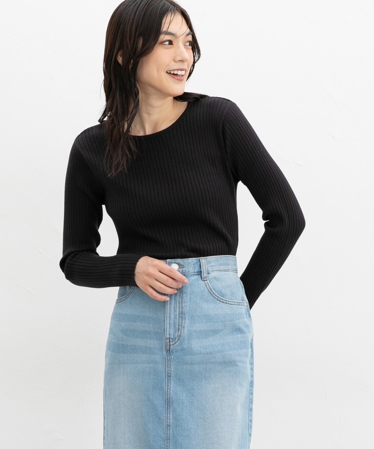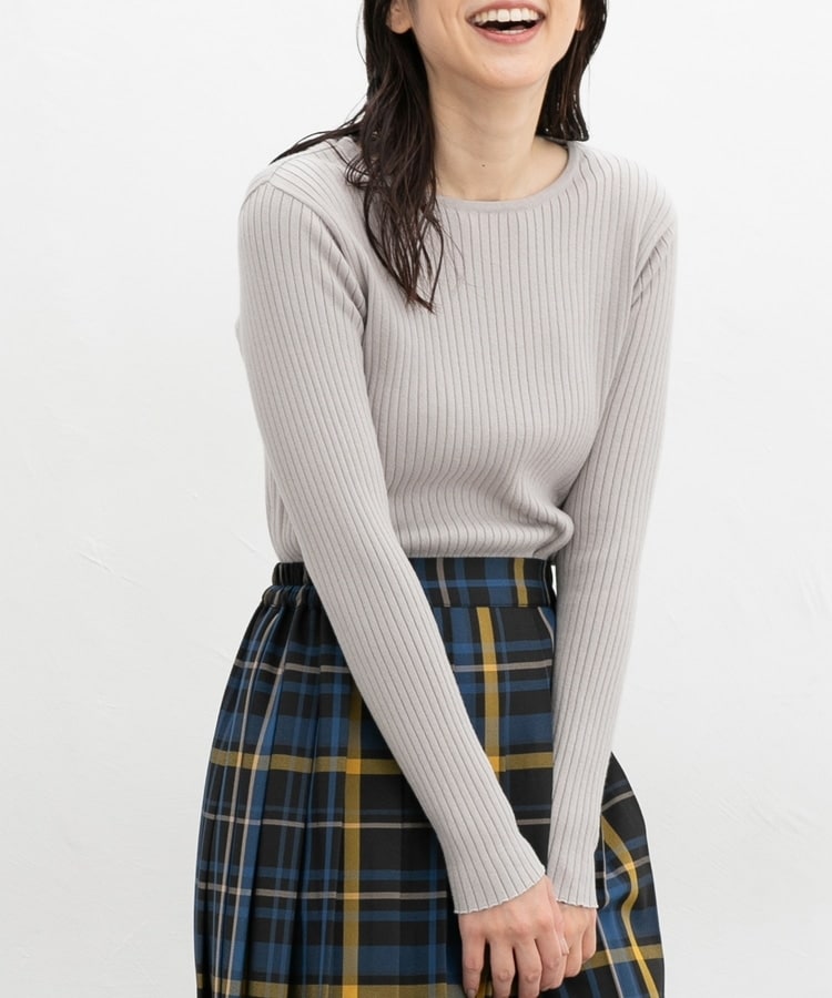 リブ編みの縦ラインでスタイルアップ効果も◎