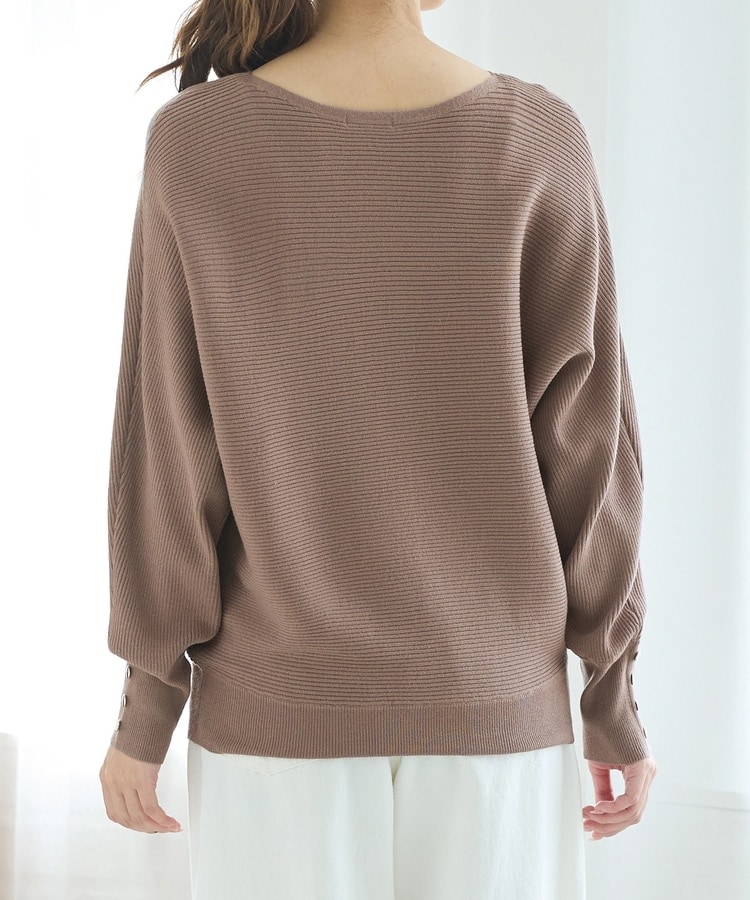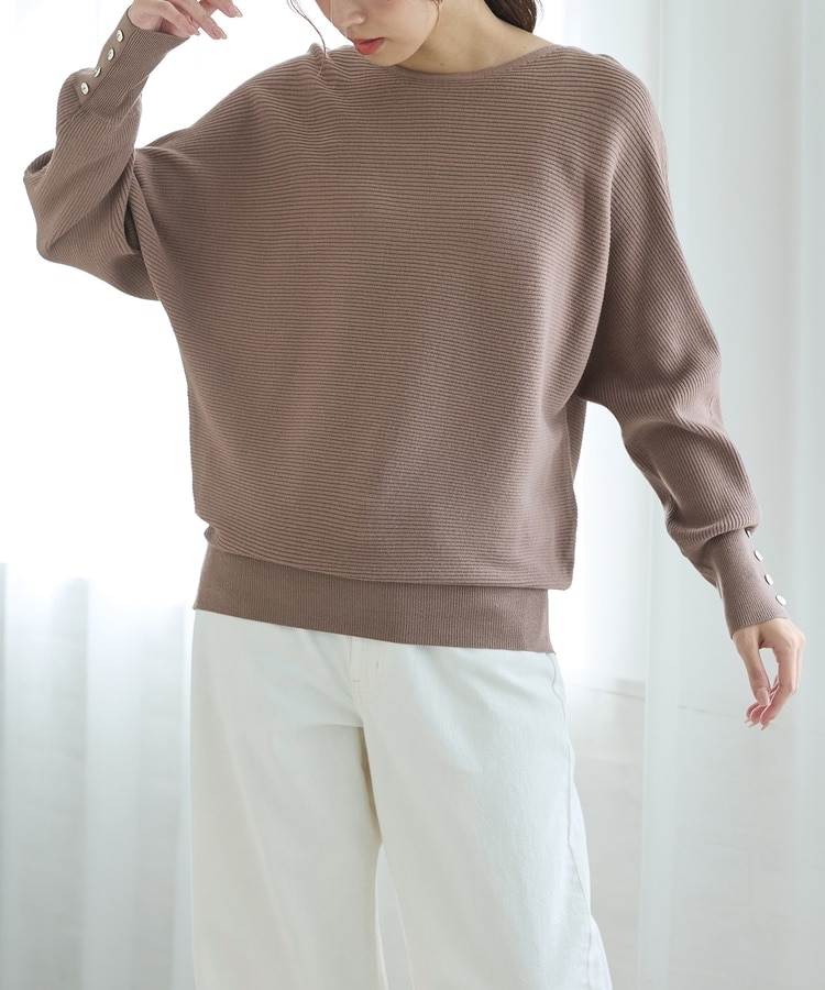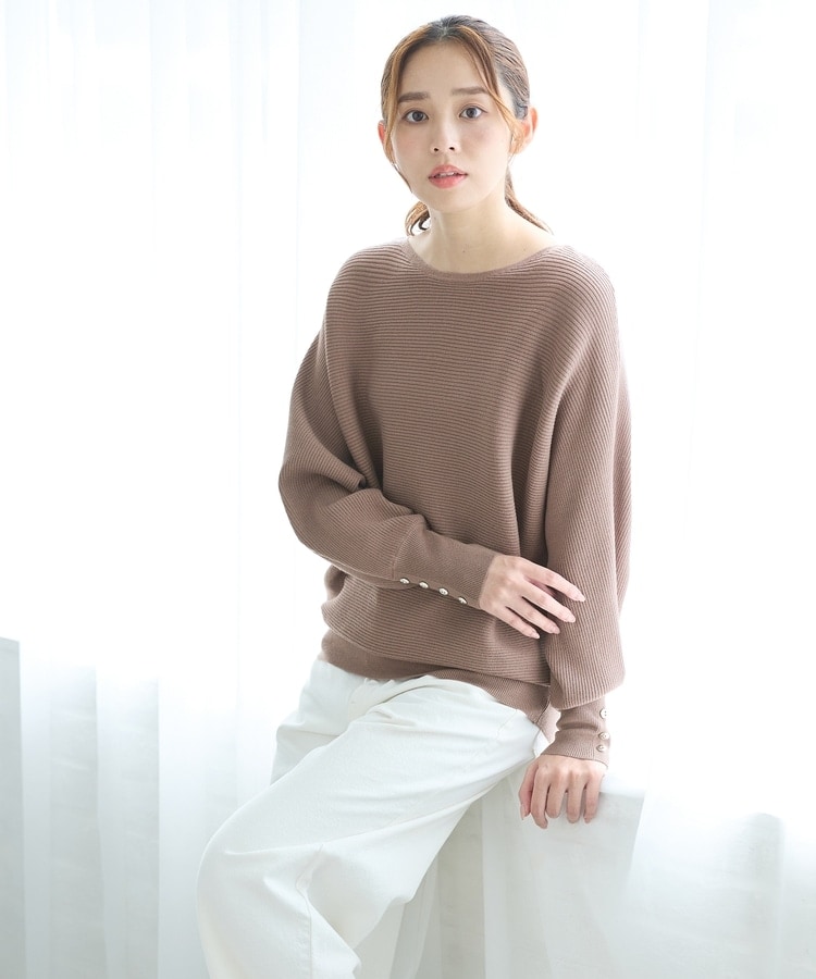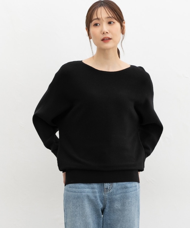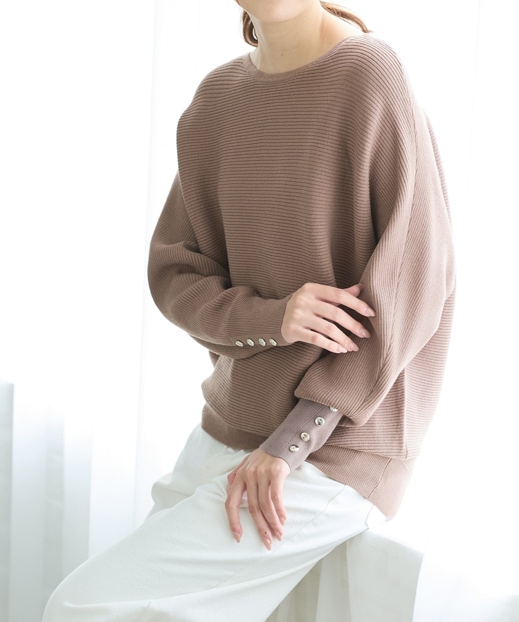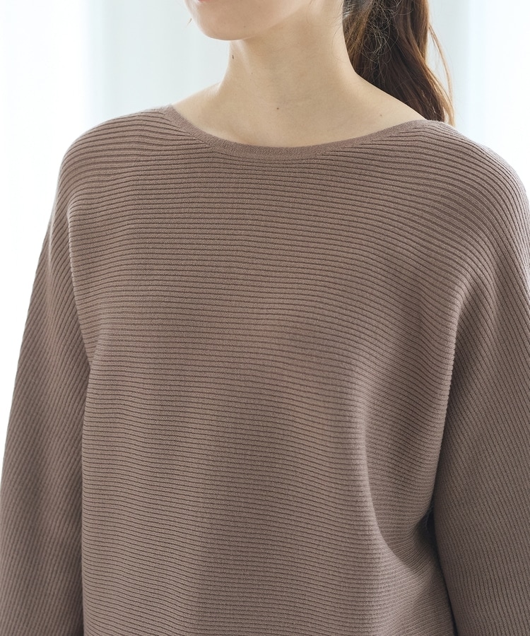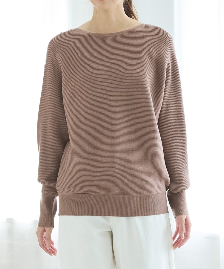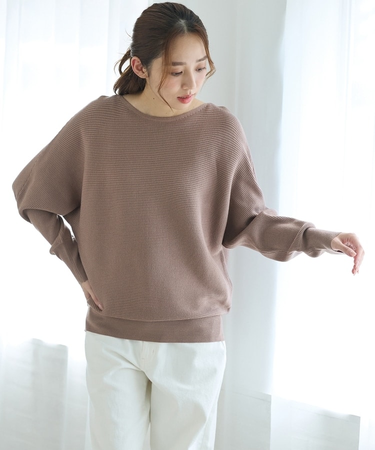 体型カバーもが叶う、ドルマンスリーブのゆったりシルエットを袖口と裾のリブで引きしめた、こなれ感のあるデザイン。