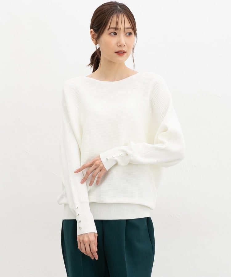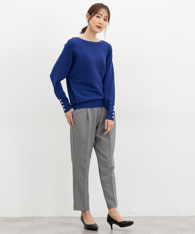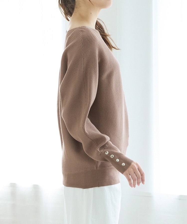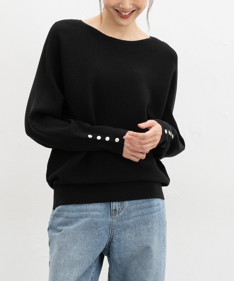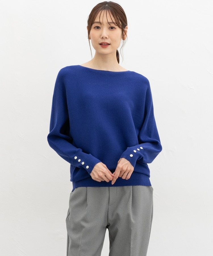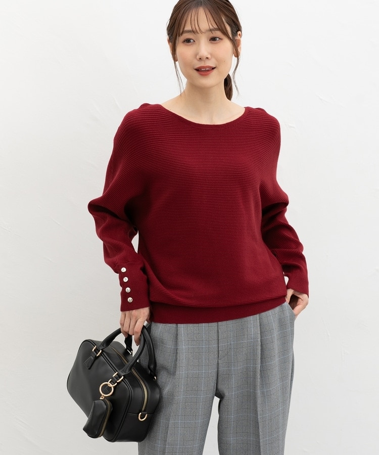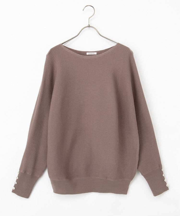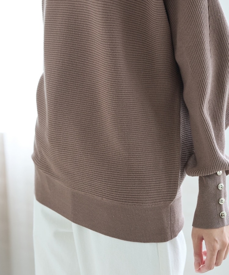体型カバーもが叶う、ドルマンスリーブのゆったりシルエットを袖口と裾のリブで引きしめた、こなれ感のあるデザイン。