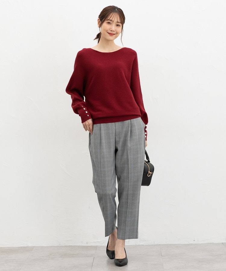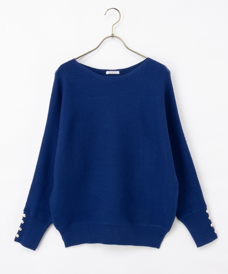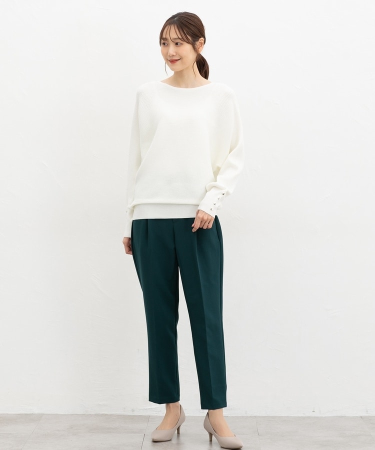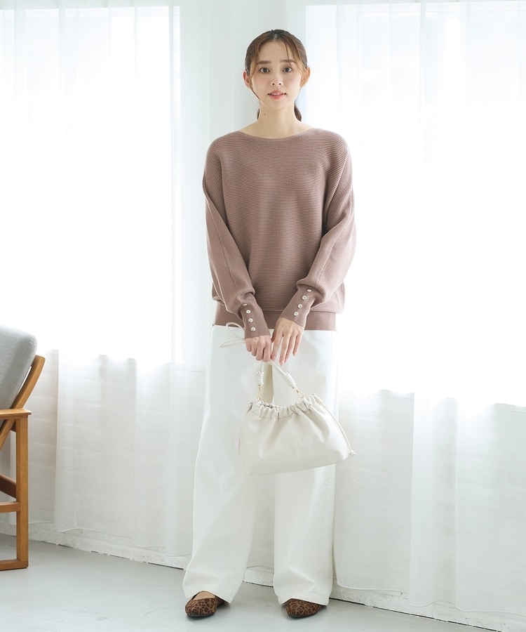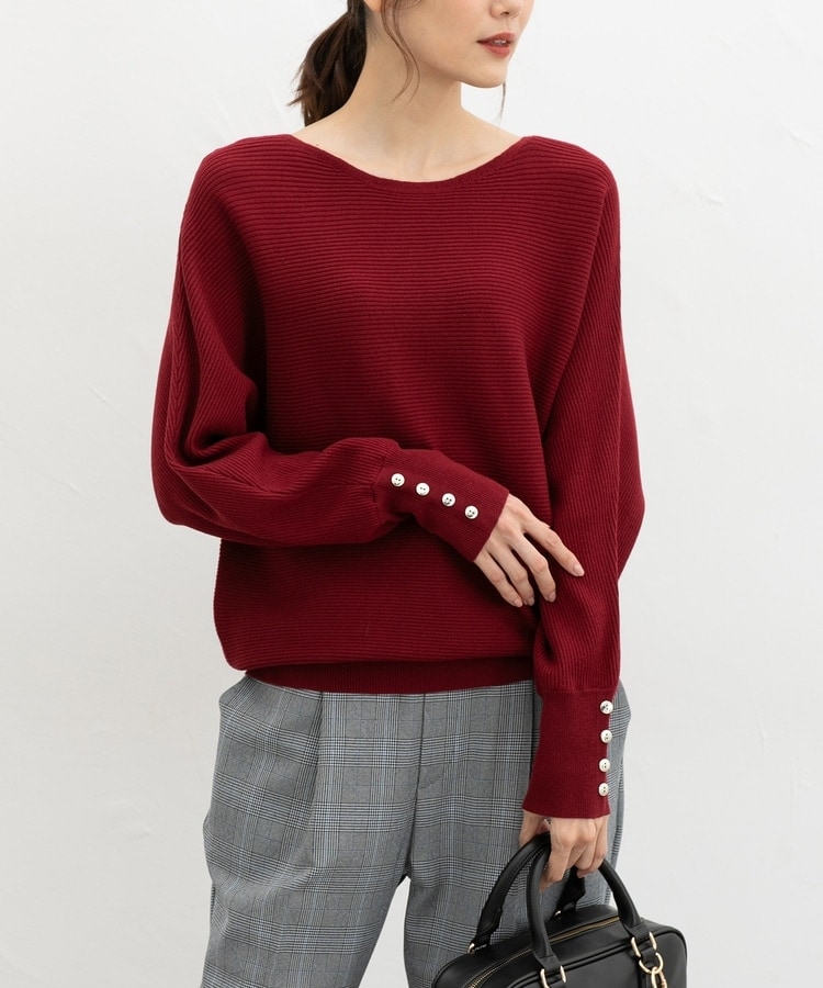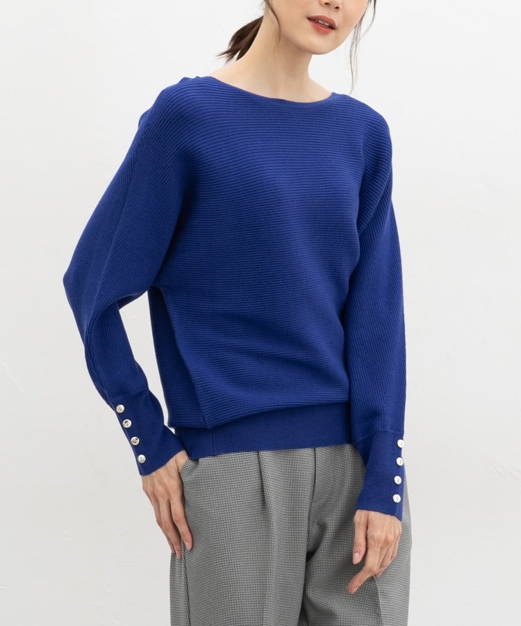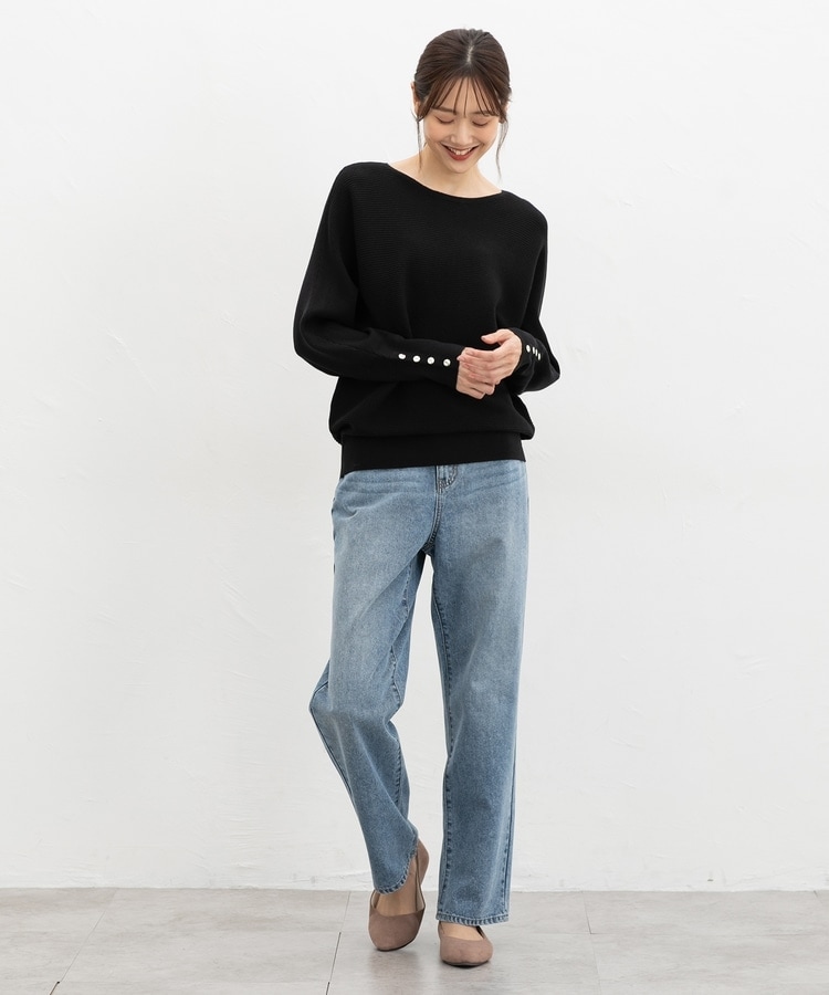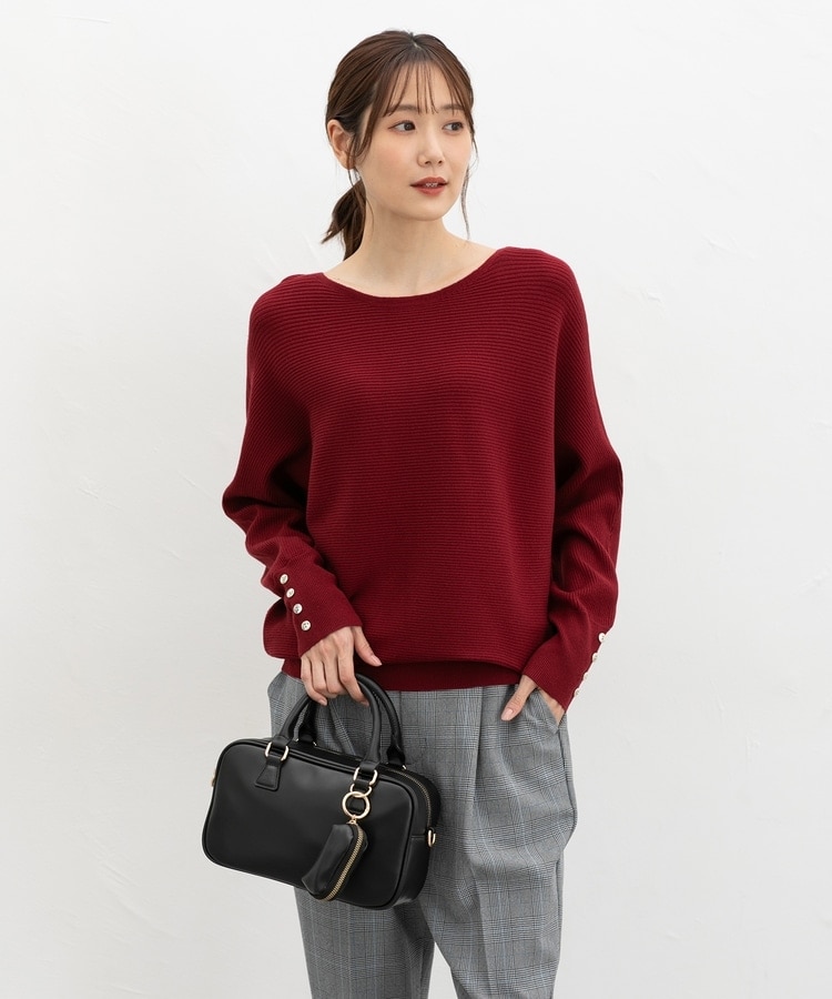 体型カバーもが叶う、ドルマンスリーブのゆったりシルエットを袖口と裾のリブで引きしめた、こなれ感のあるデザイン。