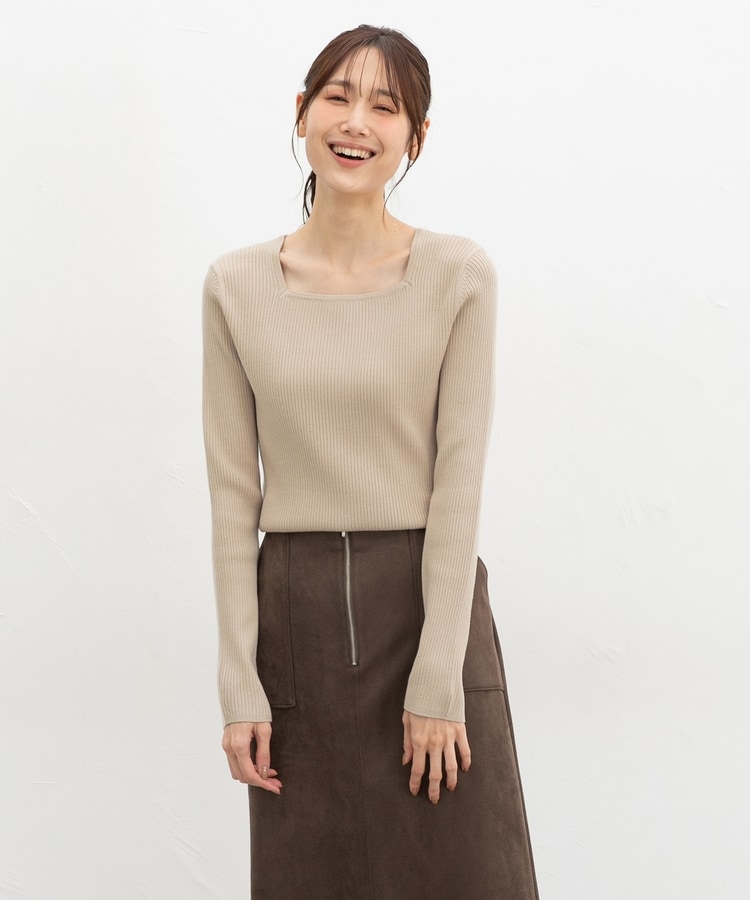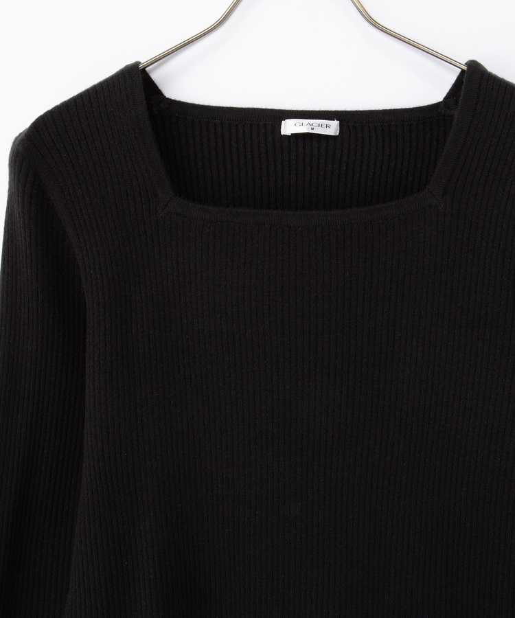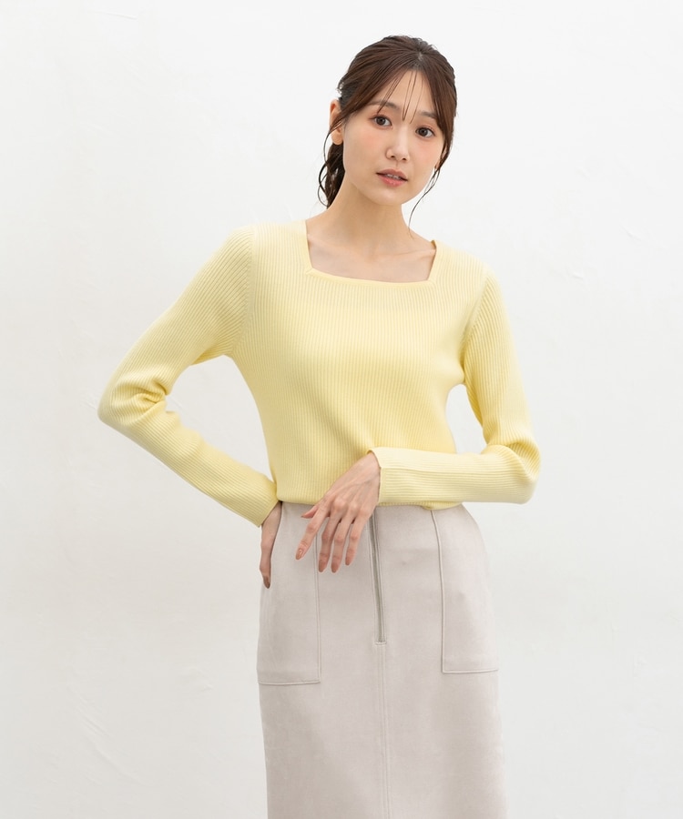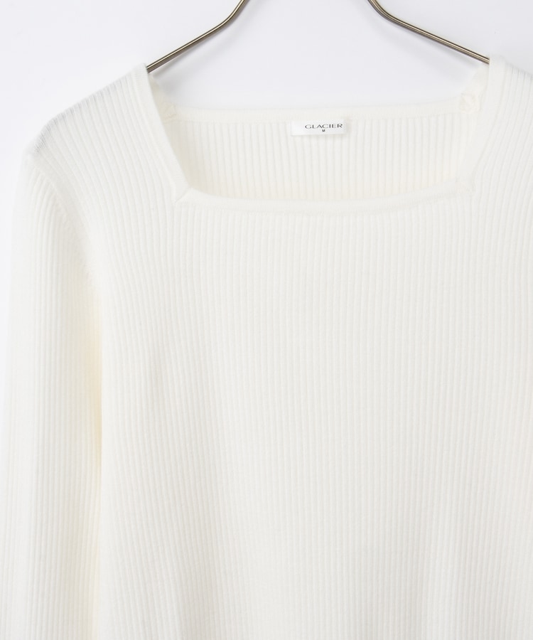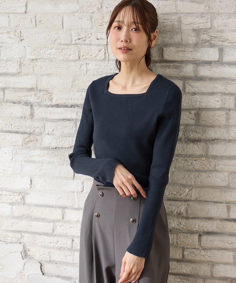 デコルテを華奢に見せて上品な印象のスクエアネックデザイン。