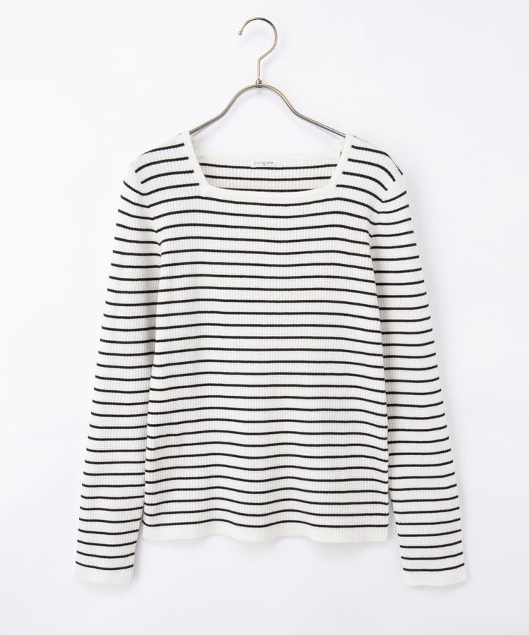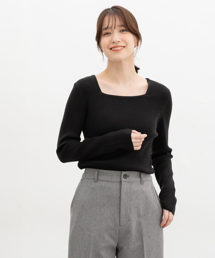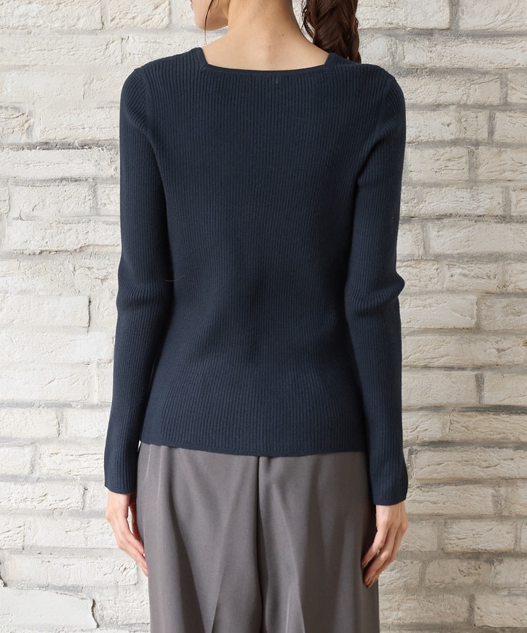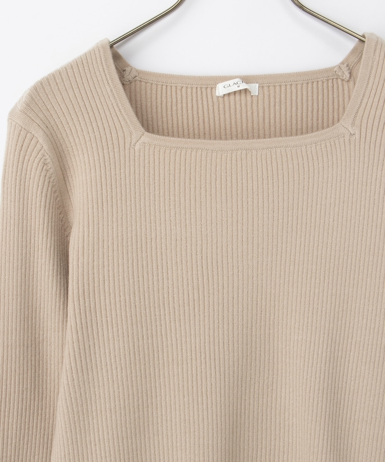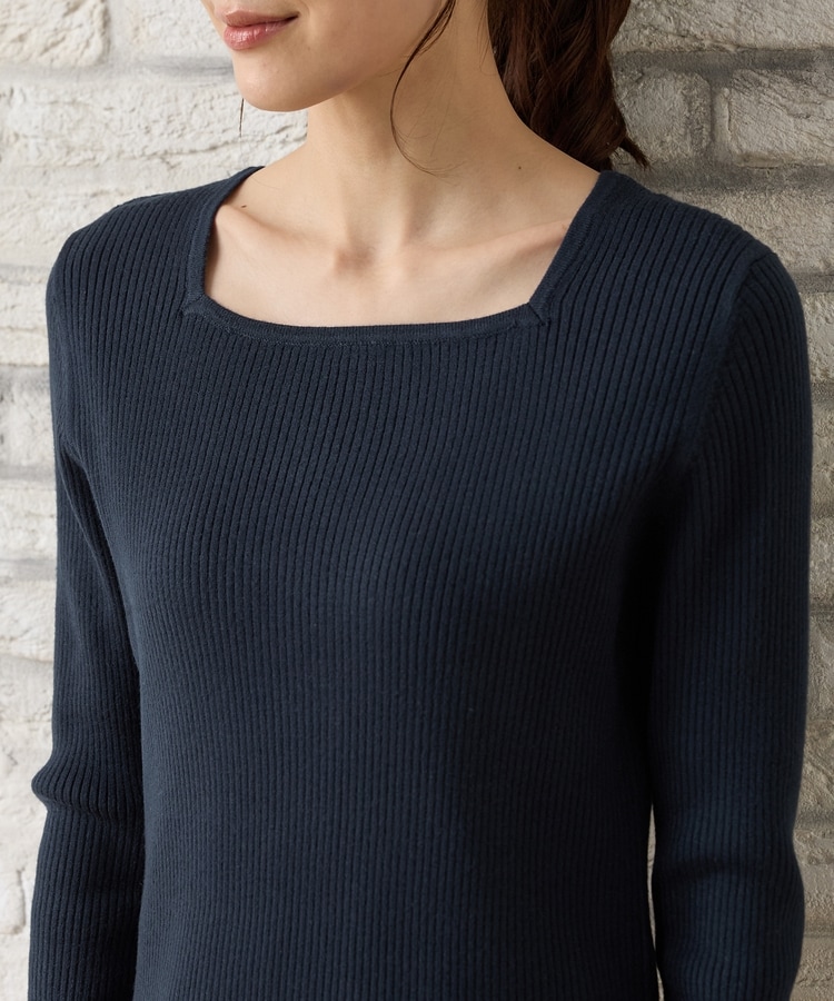 デコルテを華奢に見せて上品な印象のスクエアネックデザイン。