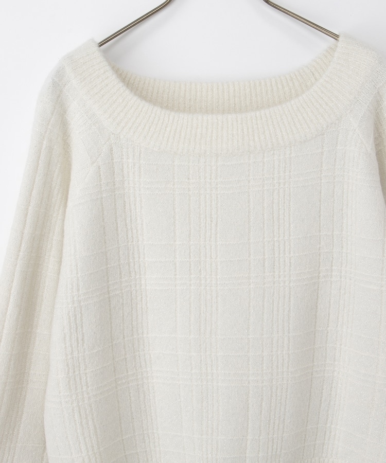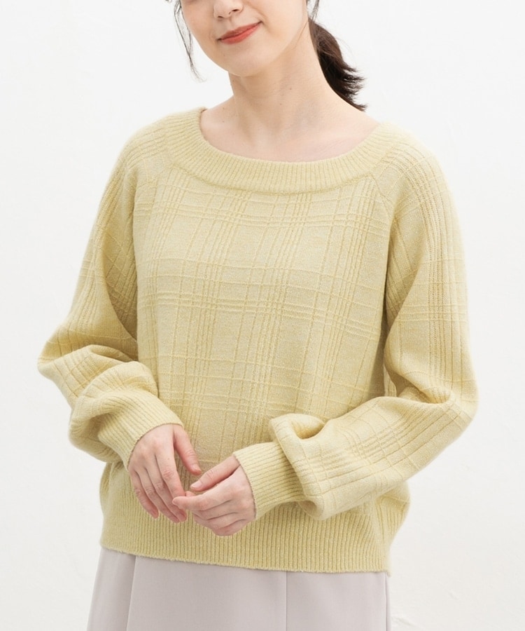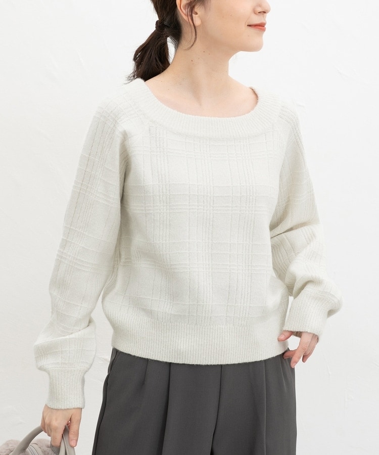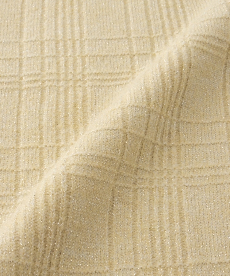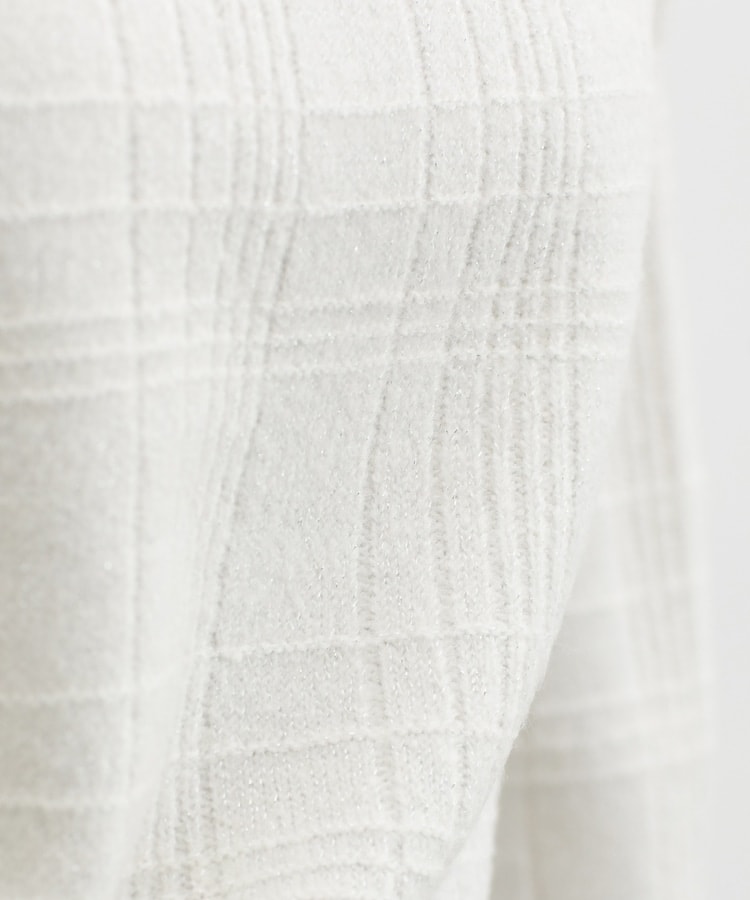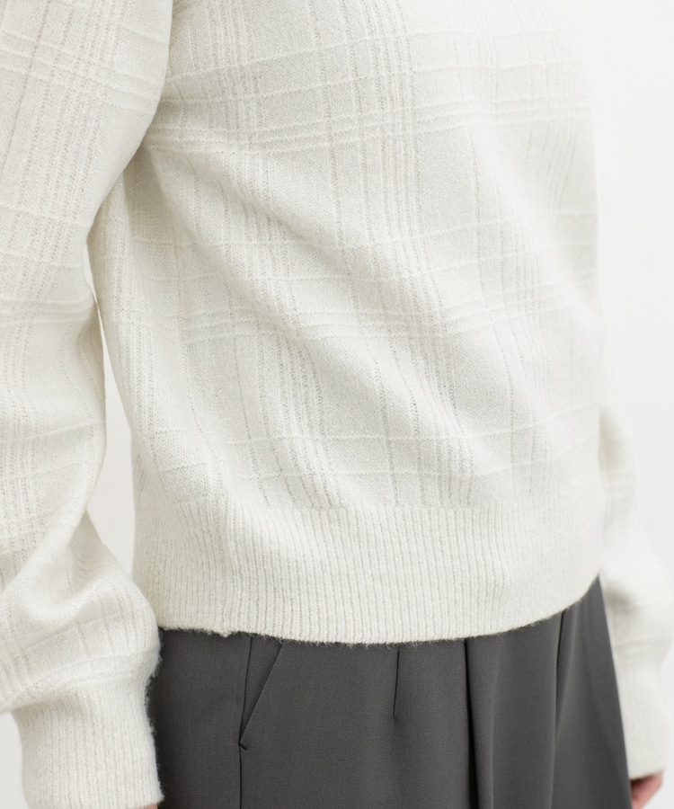 程よい厚みで暖かく、立体感のあるチェック編みニット素材。