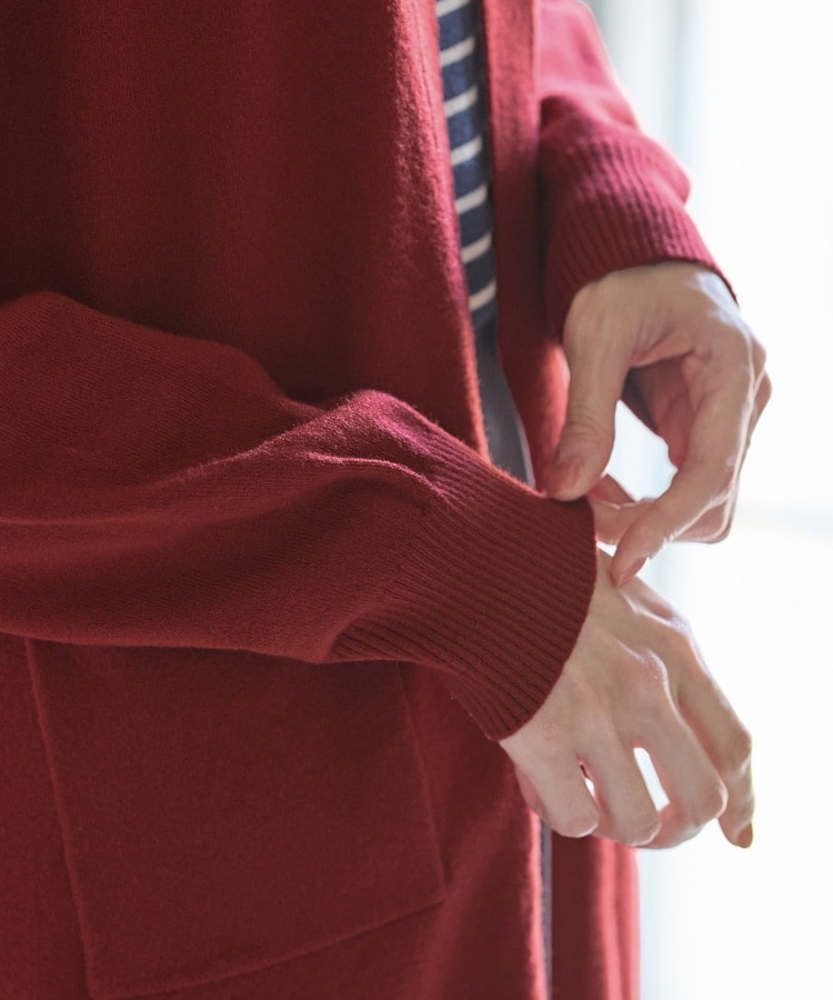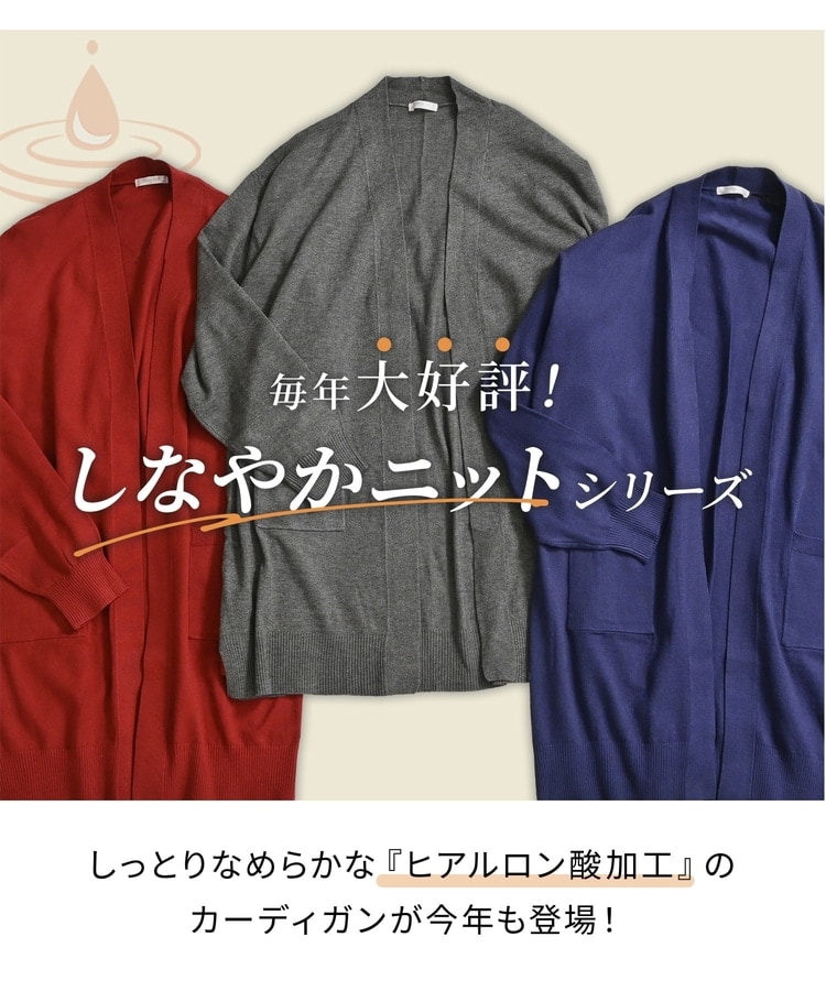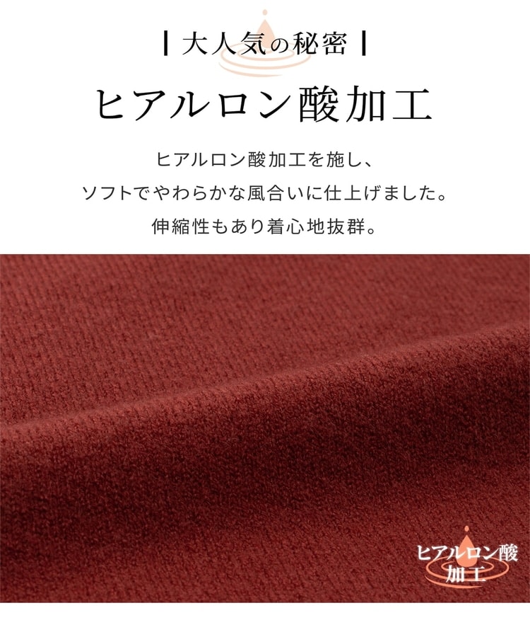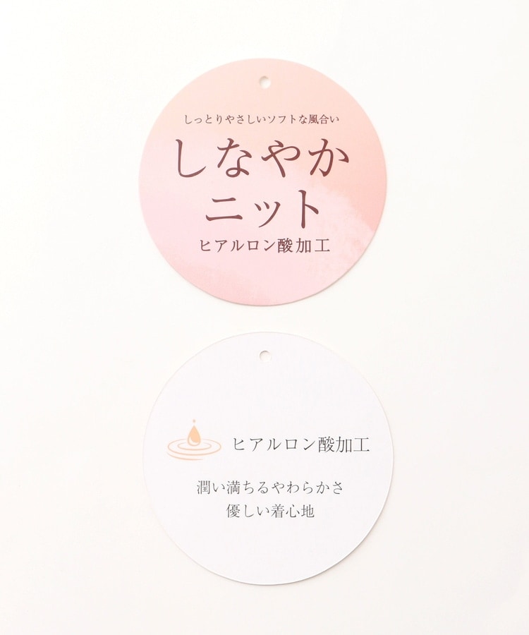 軽くてもちもちとした糸に『ヒアルロン酸加工』をプラスした、しっとりソフトな風合いの『しなやかニット』素材。