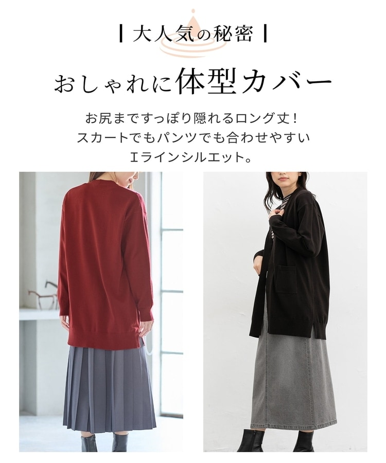 ヒップまですっぽり隠れるIラインシルエットでスタイルアップ効果も◎