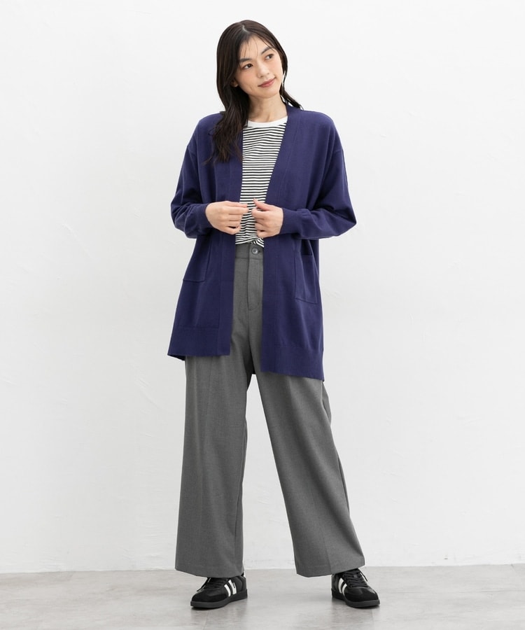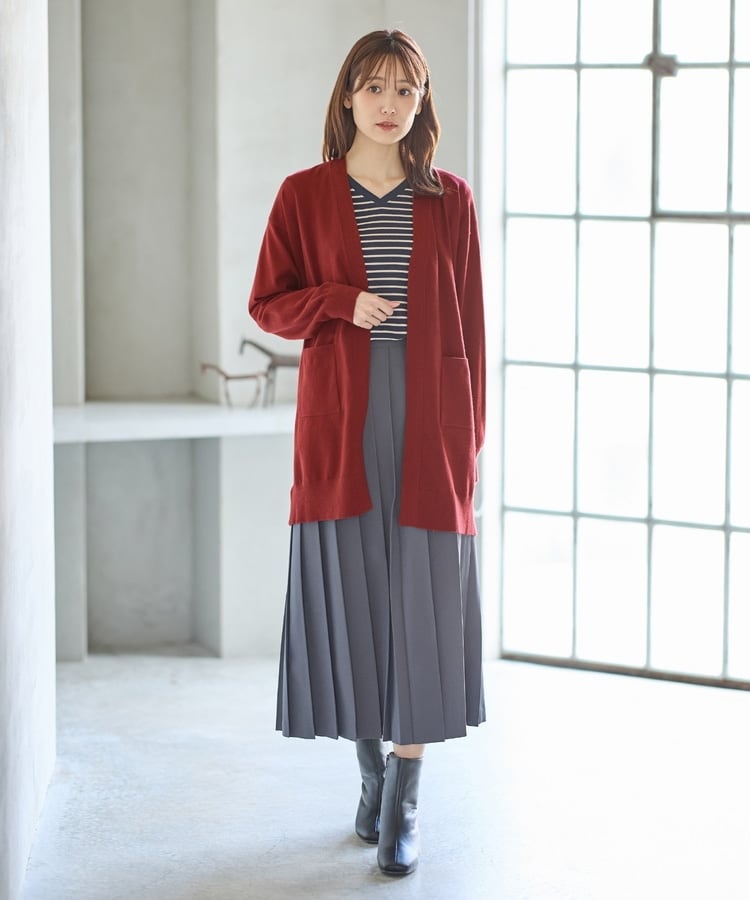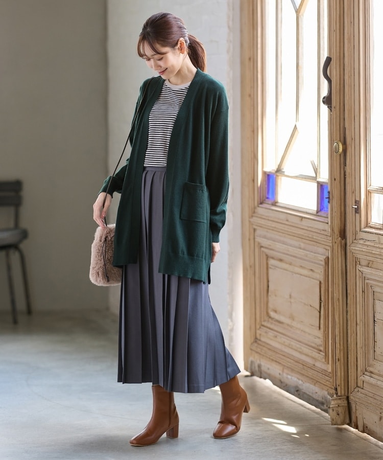 パンツはもちろん、ロングスカートやワンピースとのコーデもおすすめ。