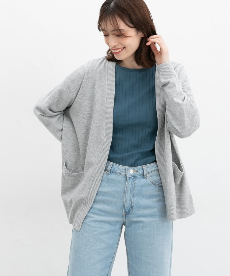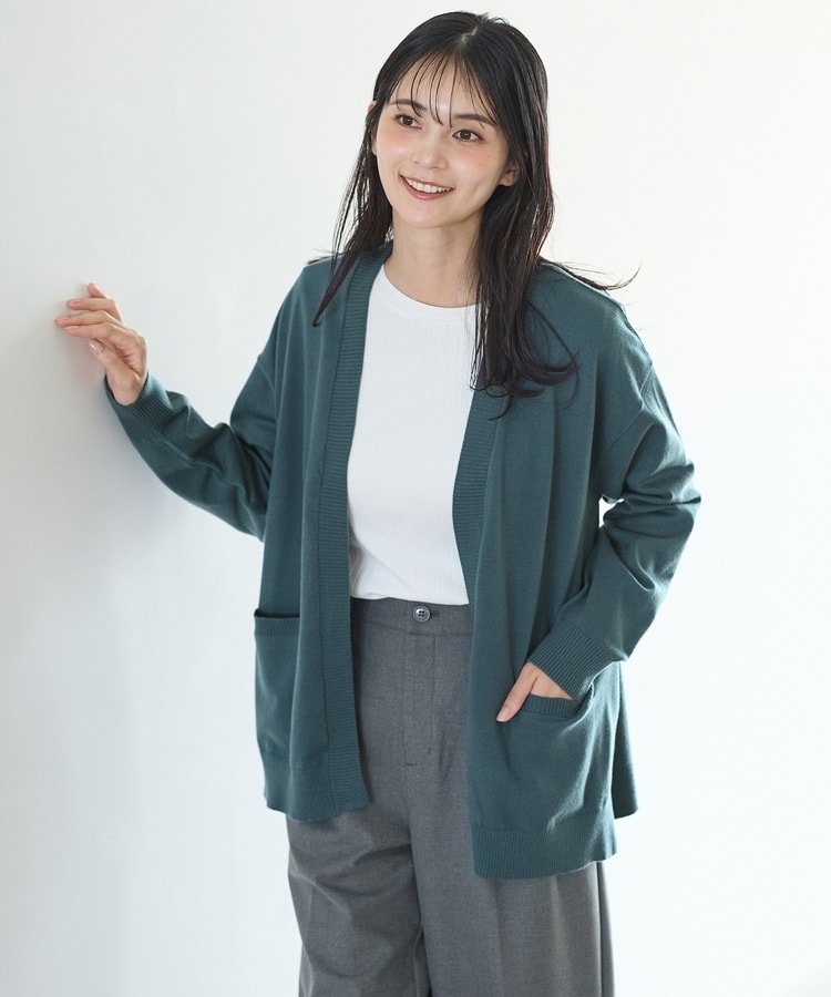 手軽に羽織れるボタンレスのシンプルデザイン。