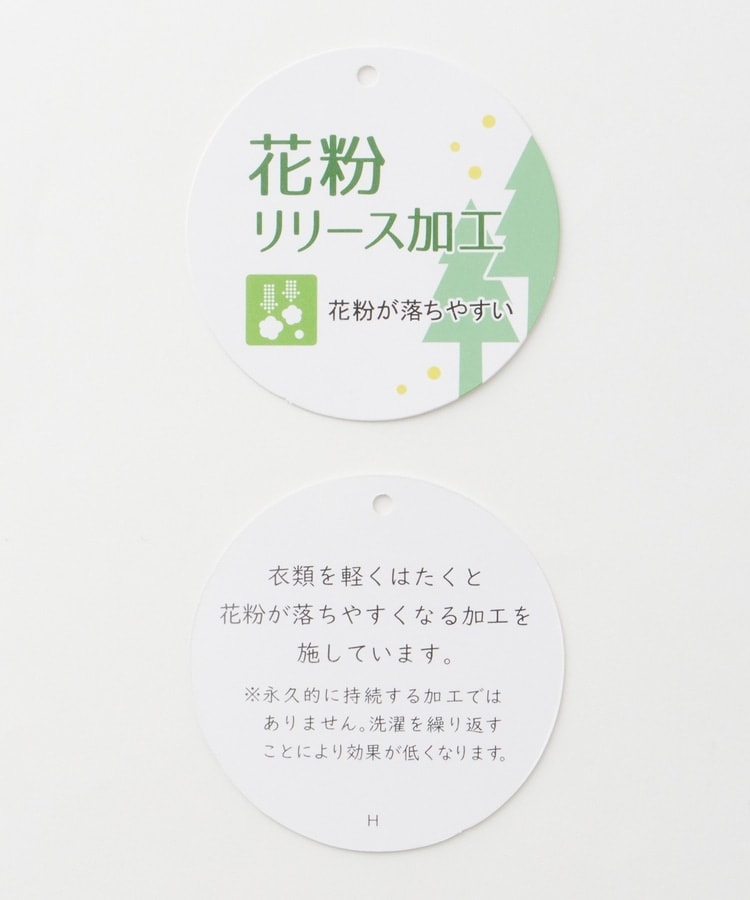 紫外線の透過を緩和する『UVカット』機能と、軽くはたくと花粉が落ちやすくなる『花粉リリース加工』をプラス。