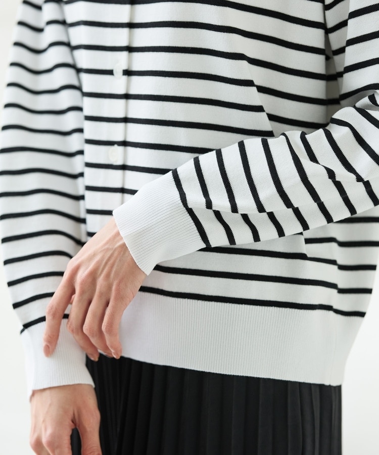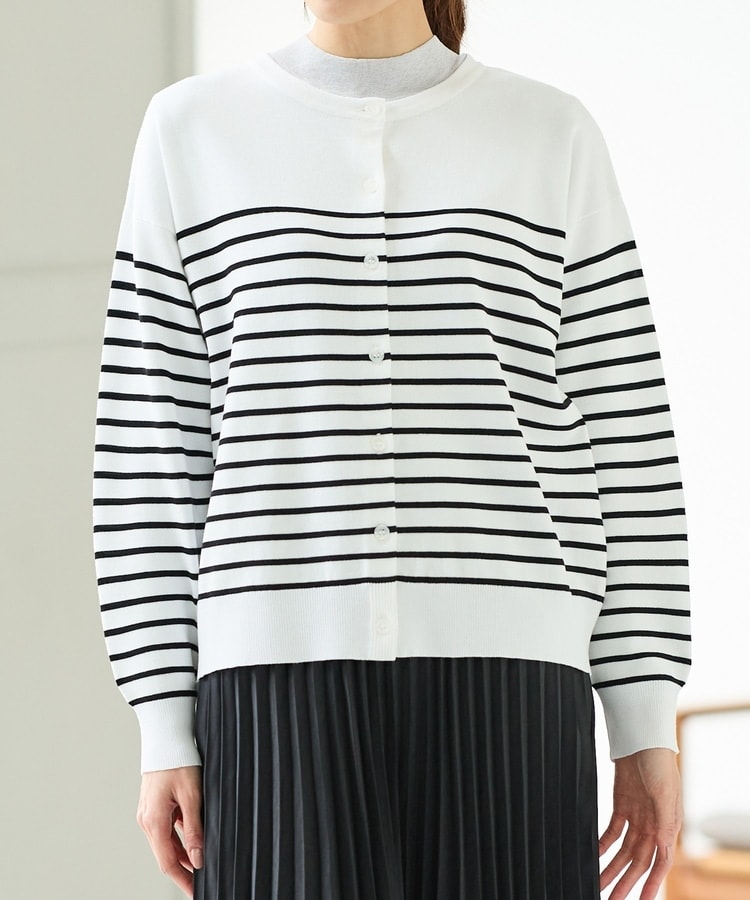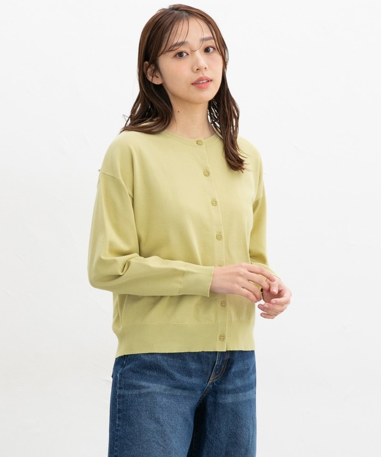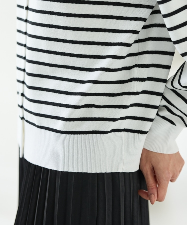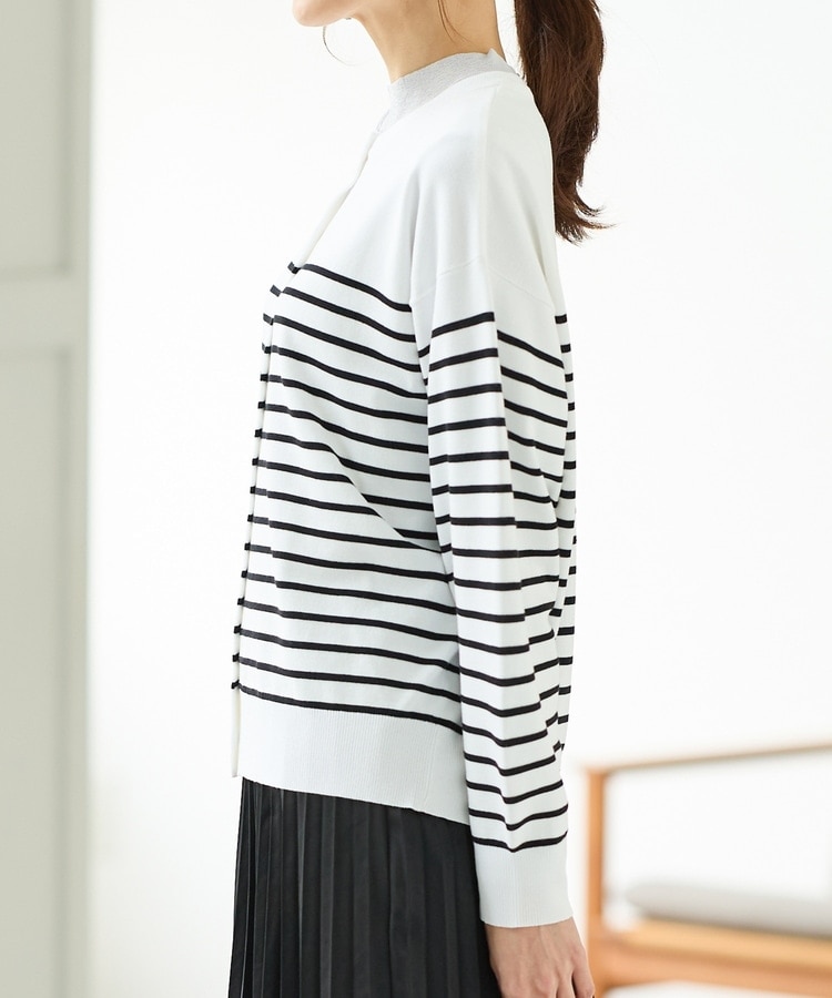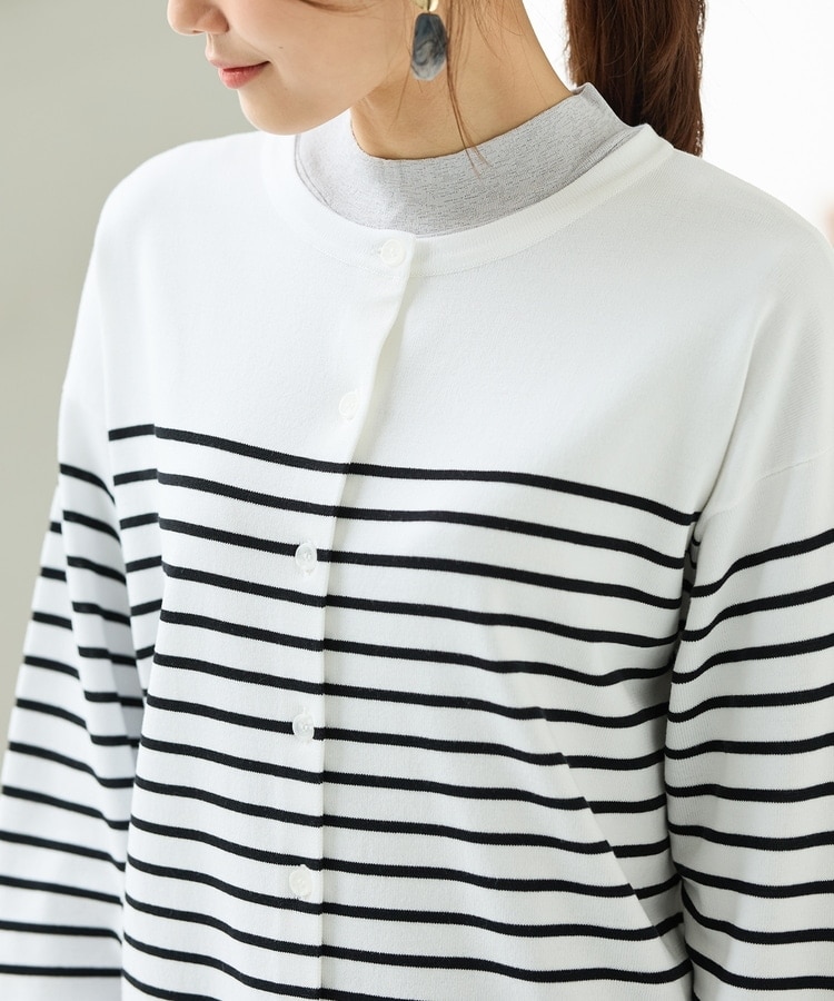 ハイネックとのレイヤードや、ワンピース合わせ、ボタンを閉めてプルオーバーとして楽しむのも◎