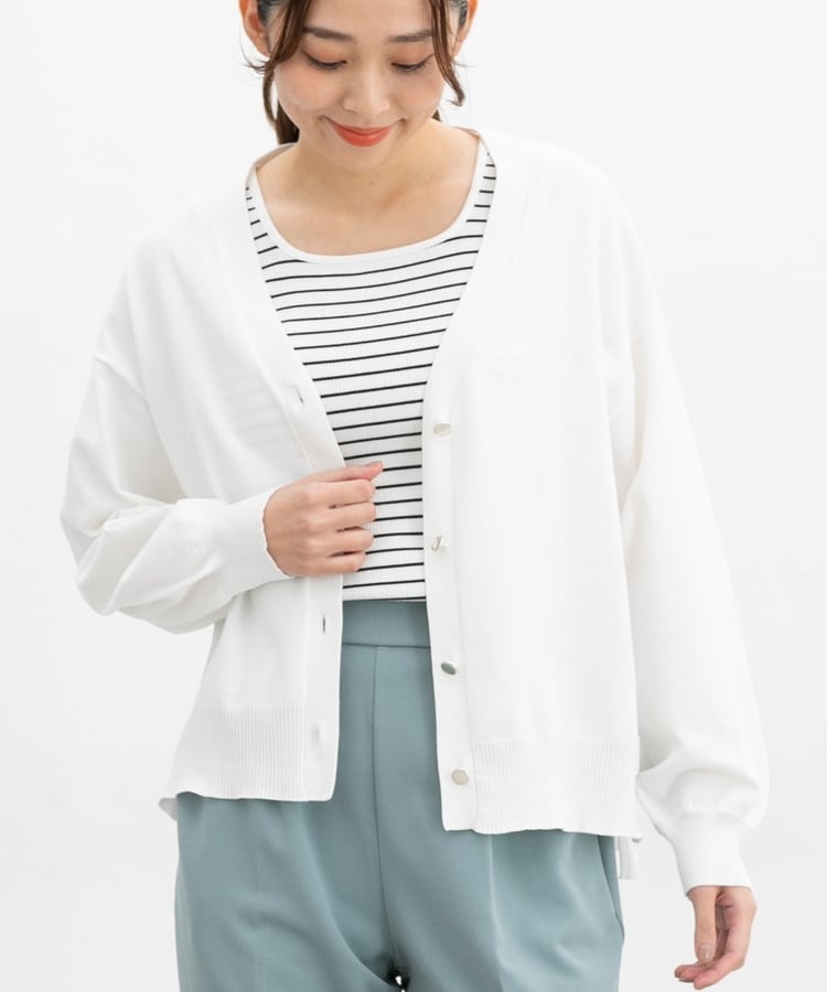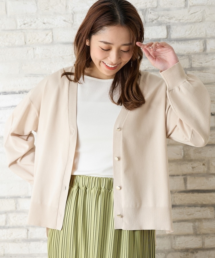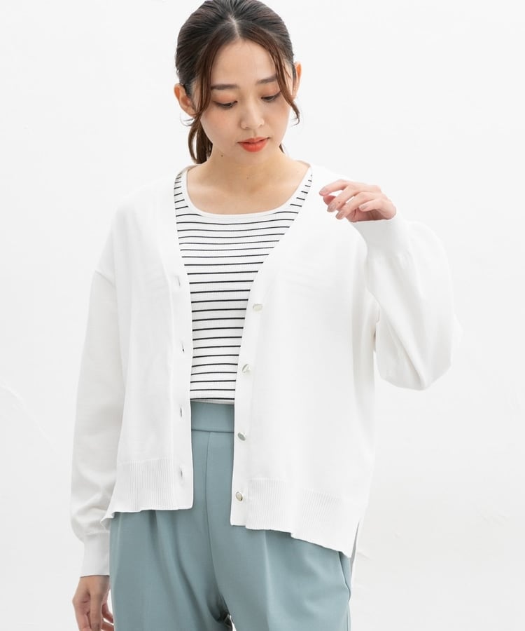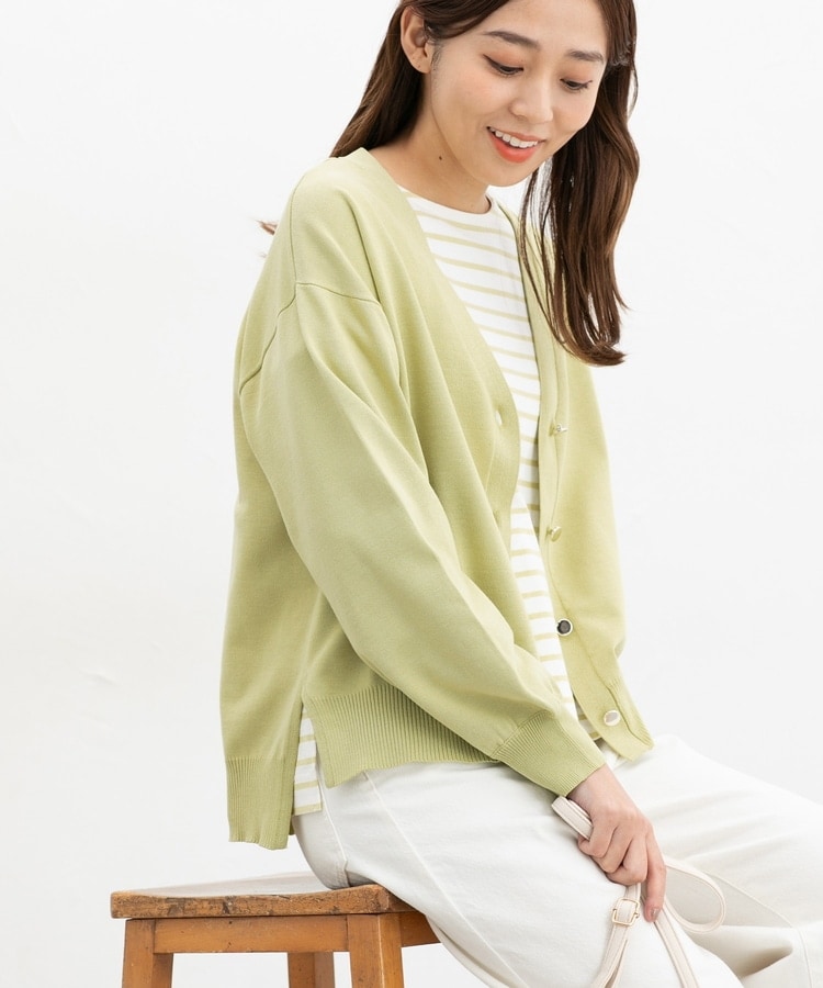 どんなコーデにも合わせやすい、シンプルなVネックデザイン。