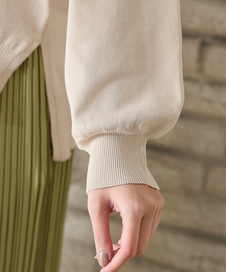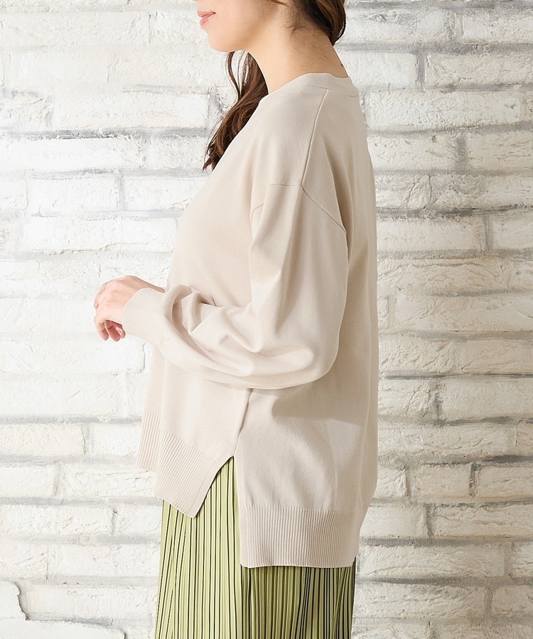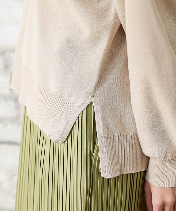 ロングシーズン使える、柔らかなレーヨン混のハイゲージニット素材。