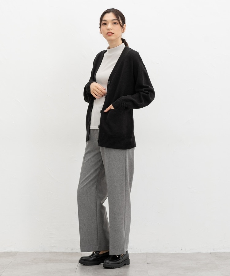 ゆったりめの幅とヒップまで隠れる丈感で気になる体形もカバー。
