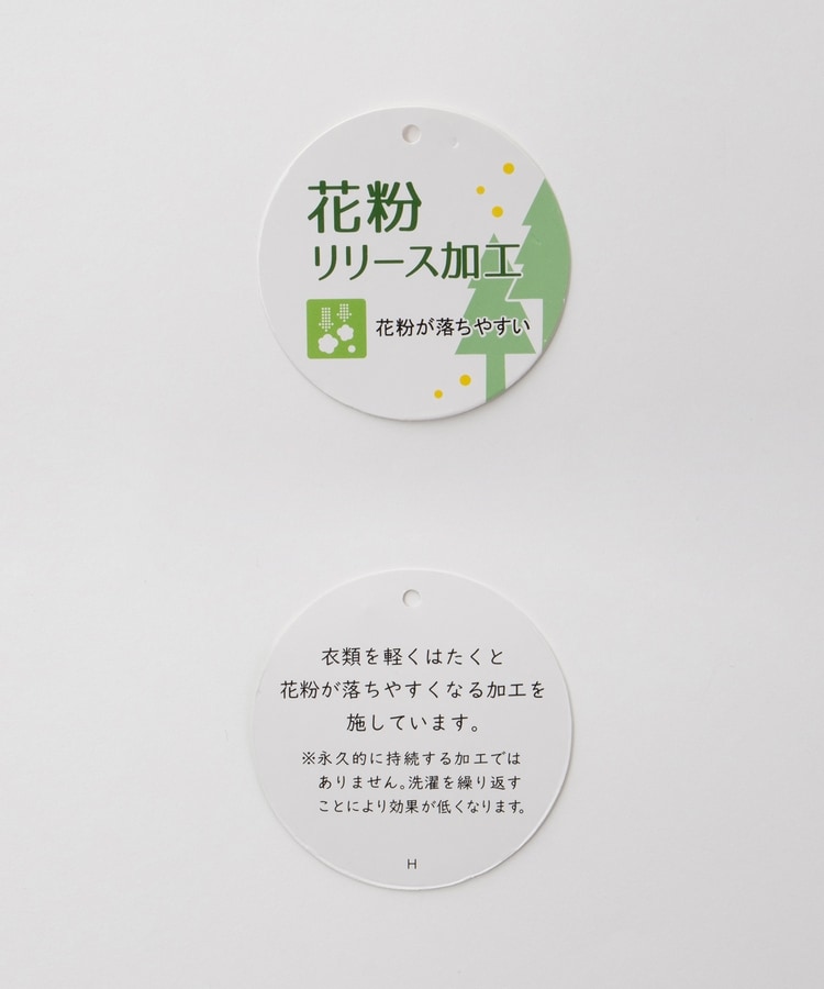 紫外線の透過を緩和する『UVカット』機能と、軽くはたくと花粉が落ちやすくなる『花粉リリース加工』をプラス。