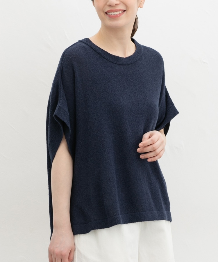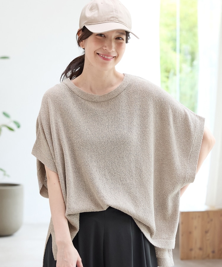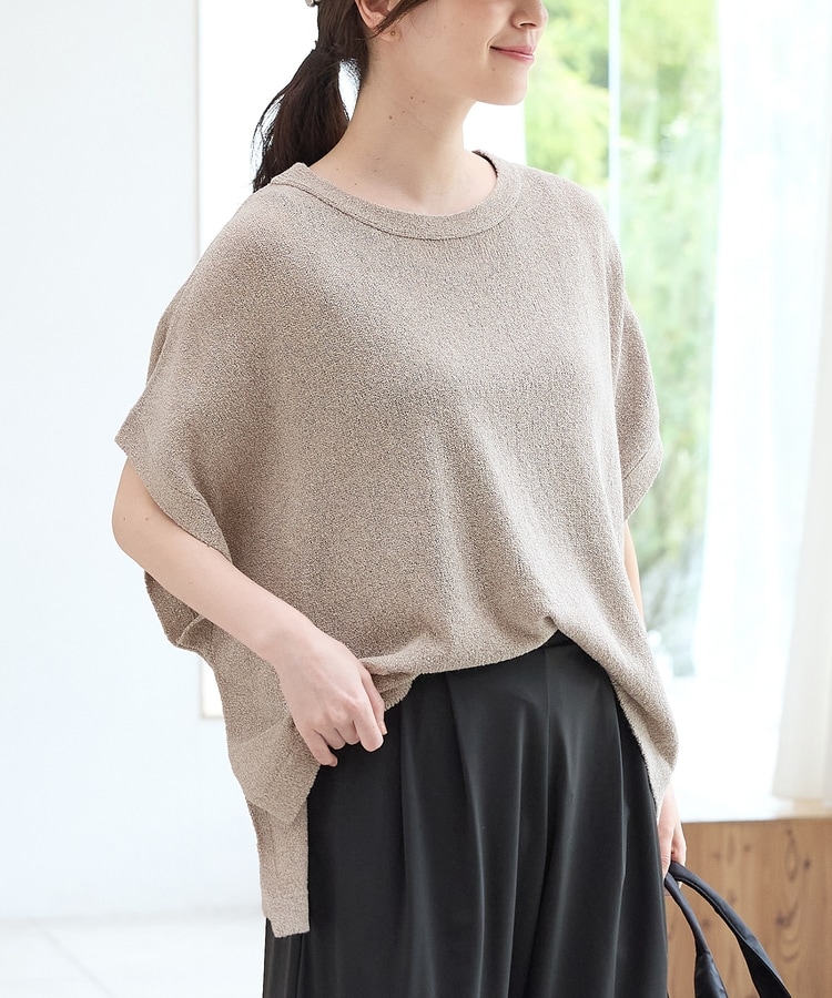 シンプルながら、ゆったりとしたボックスシルエットとサイドスリット入りの前後差ヘムで、こなれ感たっぷりなデザイン。
