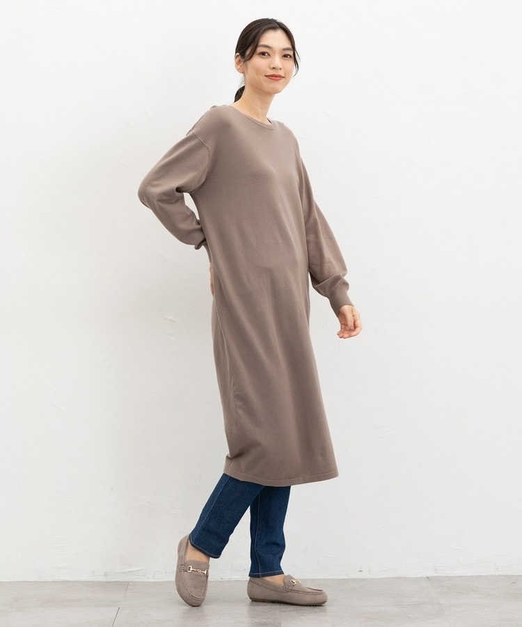 ワンピースとしはもちろん、パンツとレイヤードしても使え、幅広い着こなしに大活躍。