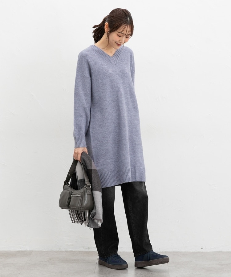 1枚でトレンドのロングブーツと合わせるのはもちろん、パンツと合わせてチュニックとして使うのも◎