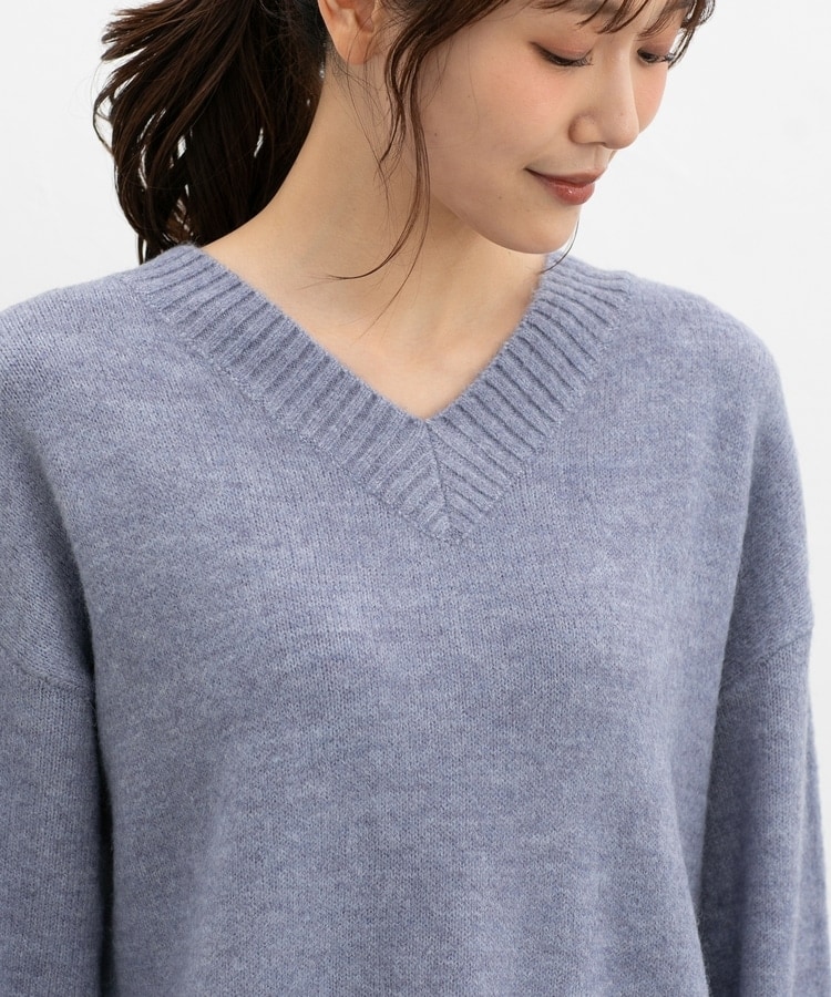 首元がすっきりきれいに見えるVネックのシンプルデザイン。