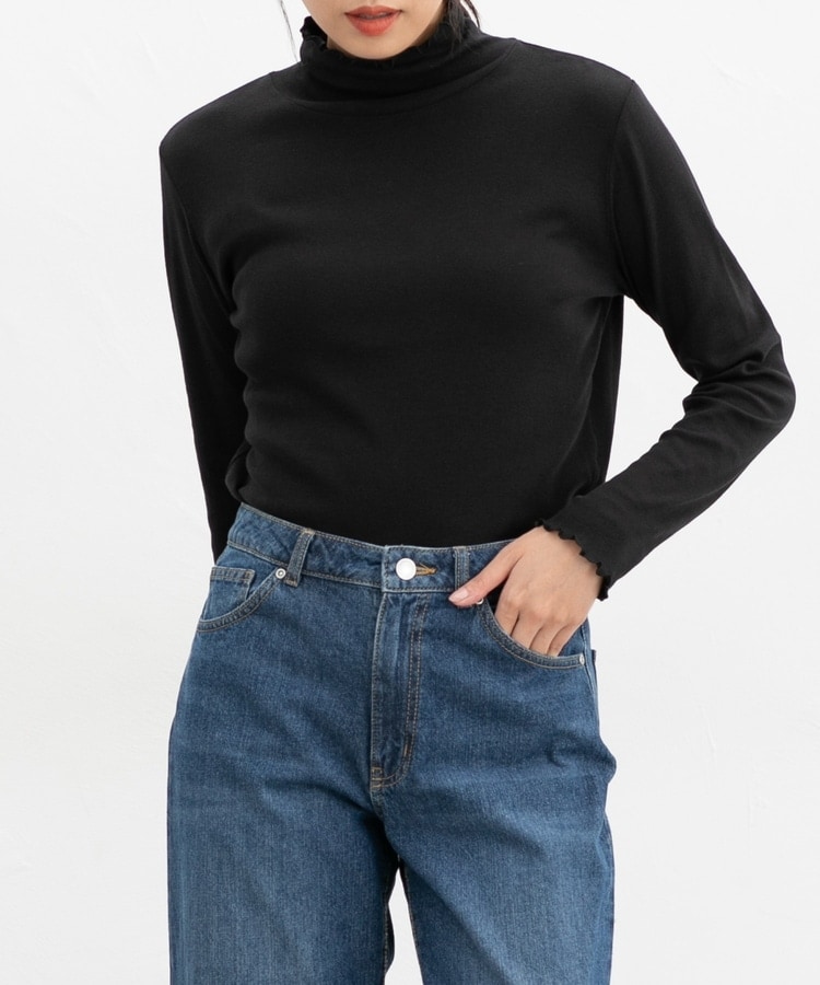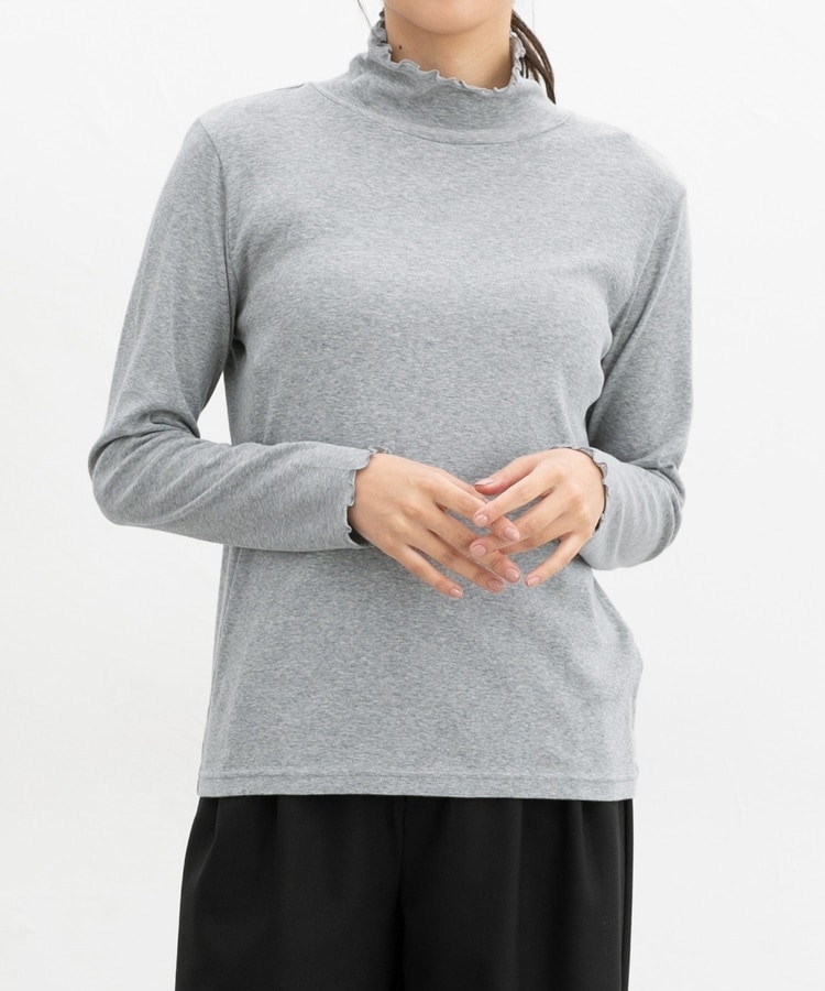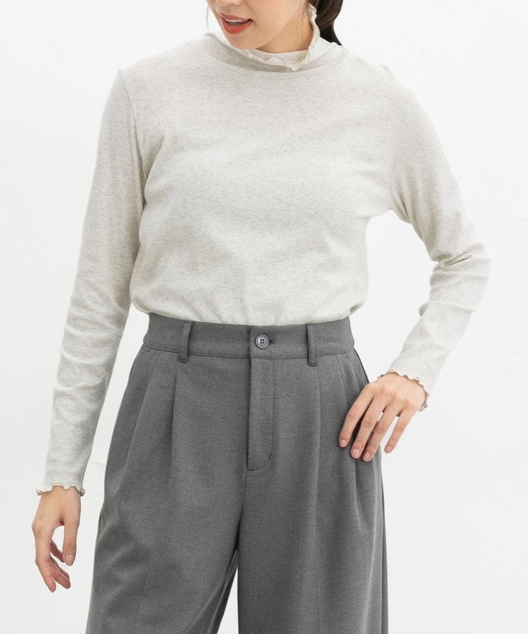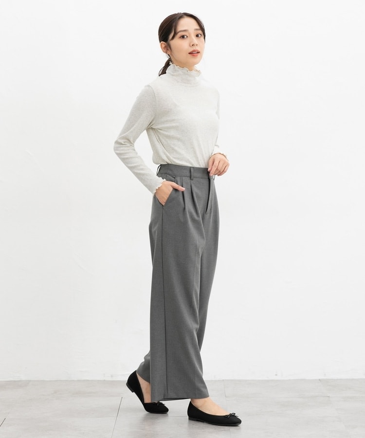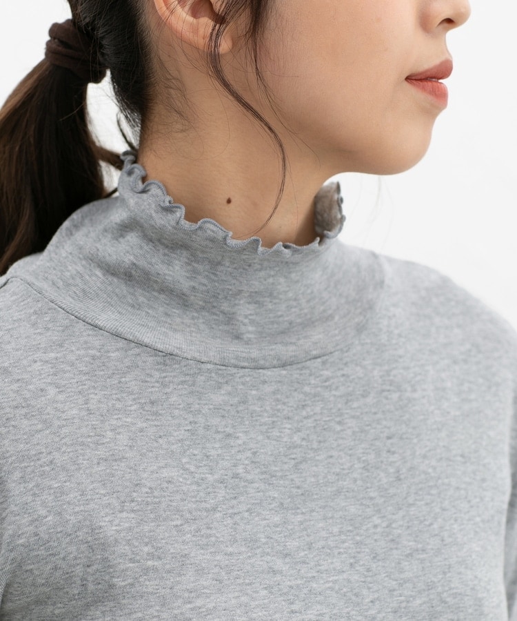 首元を隠してあったかな、程よい高さのプチハイネックに、メロー使いで洒落感をプラス。