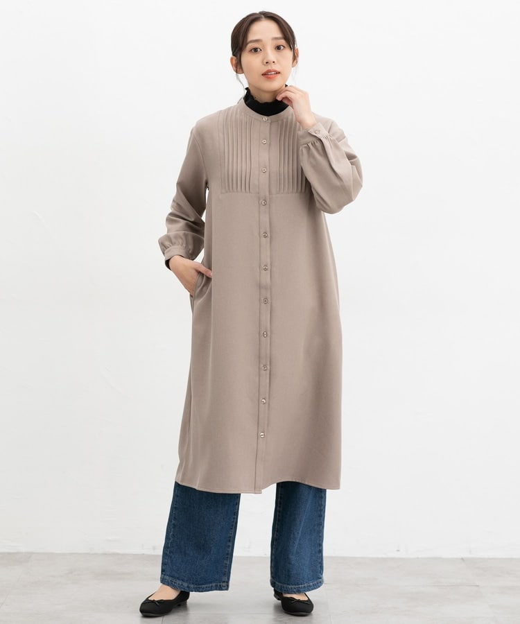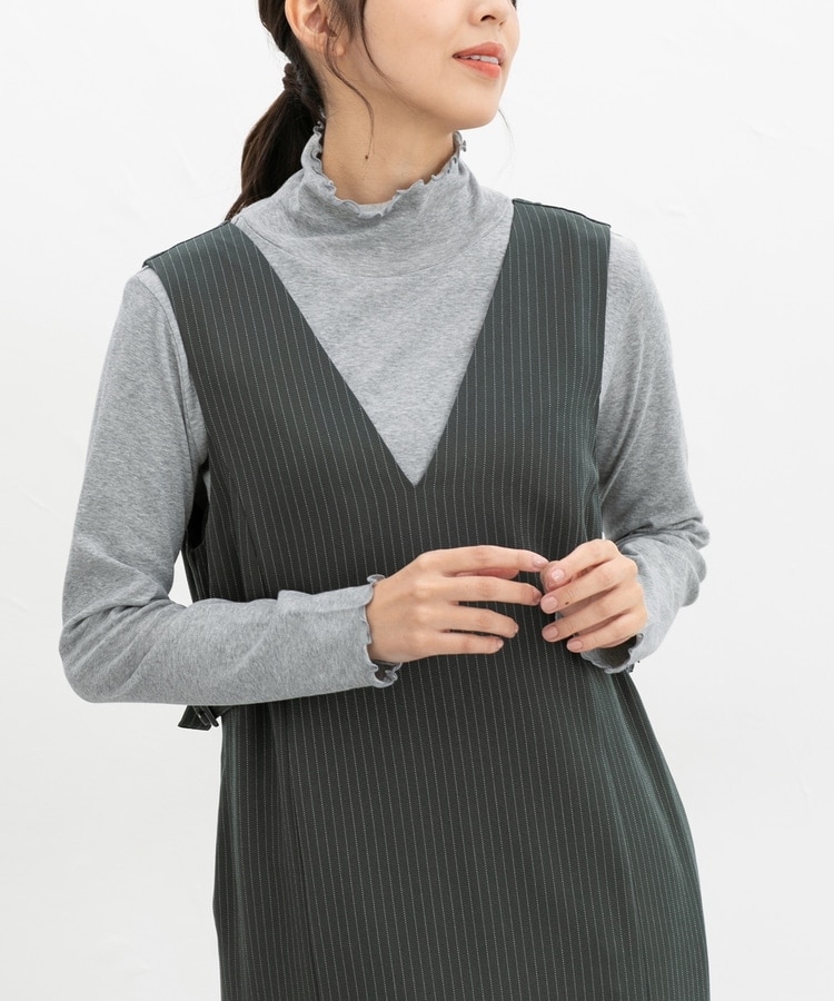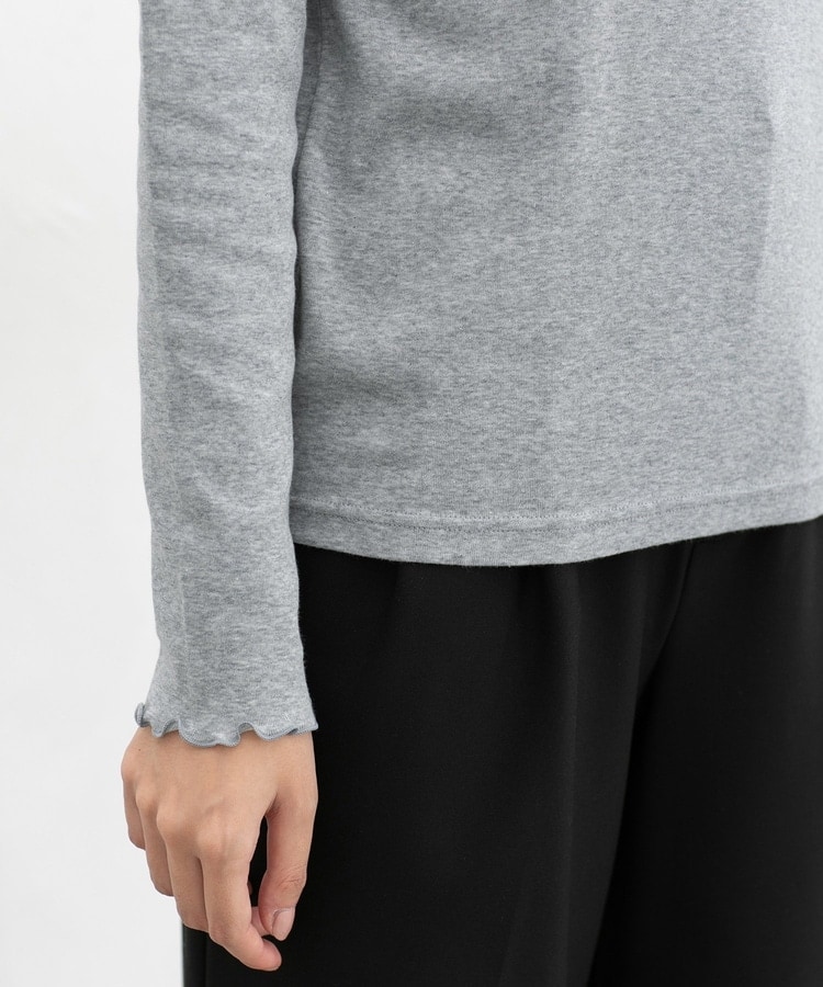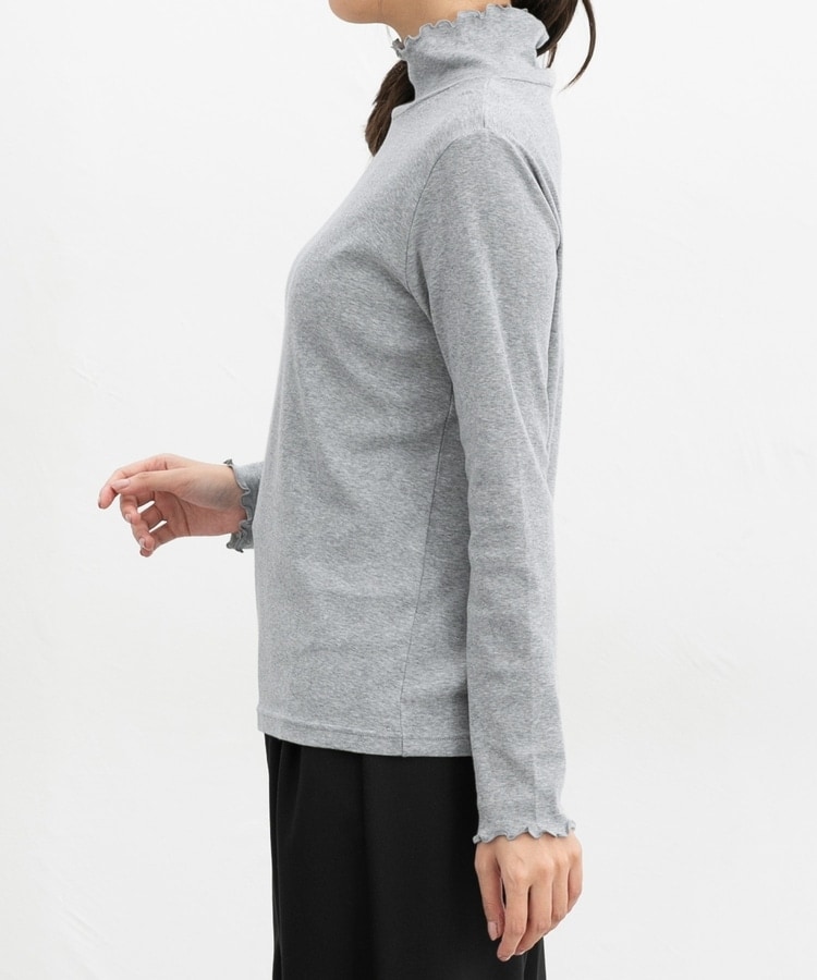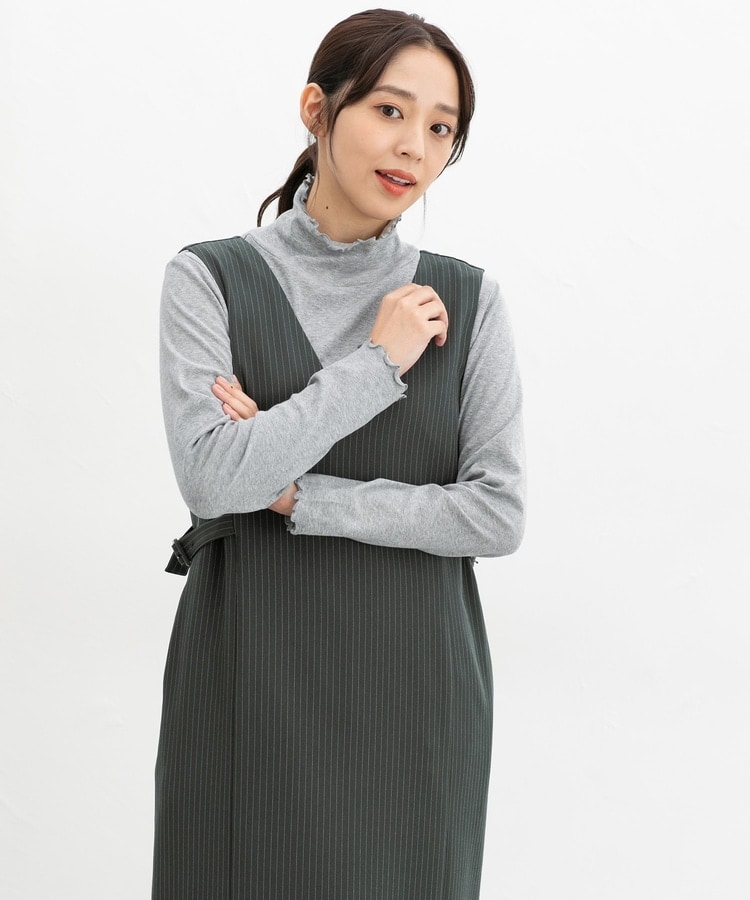 首元を隠してあったかな、程よい高さのプチハイネックに、メロー使いで洒落感をプラス。