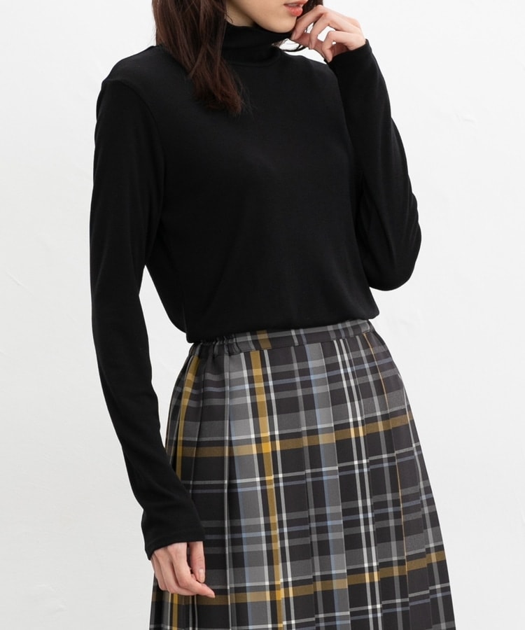 小顔効果も期待できる、程よい高さのプチハイネック。