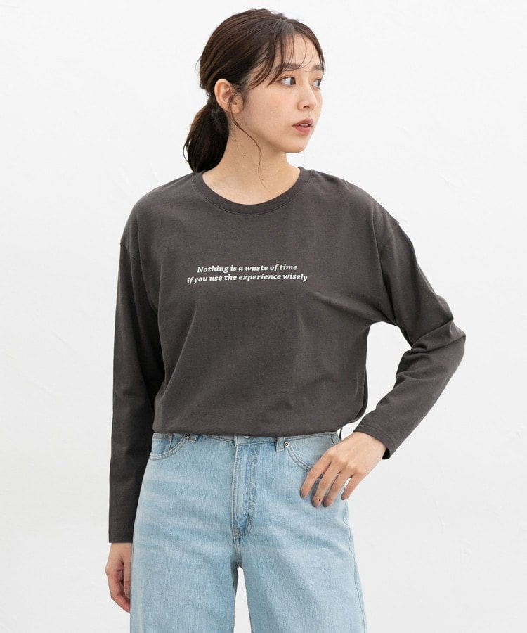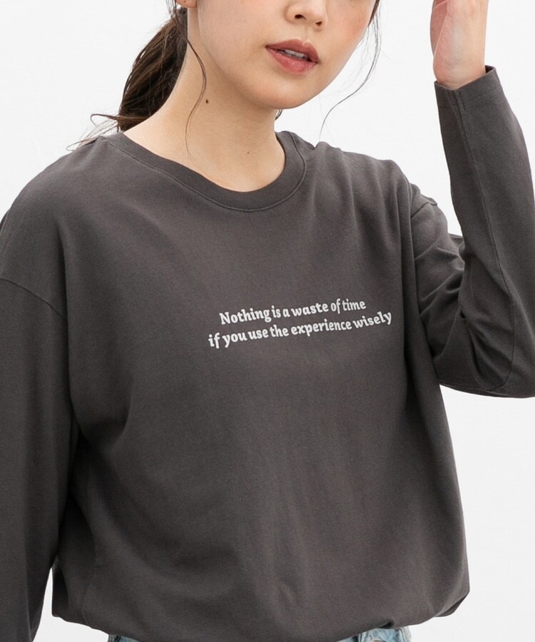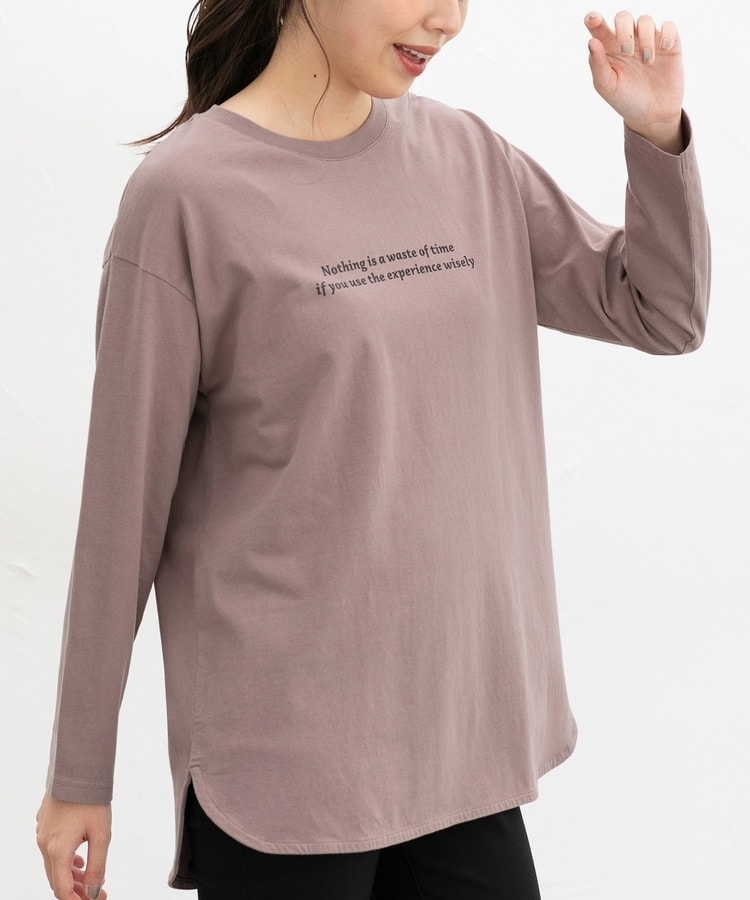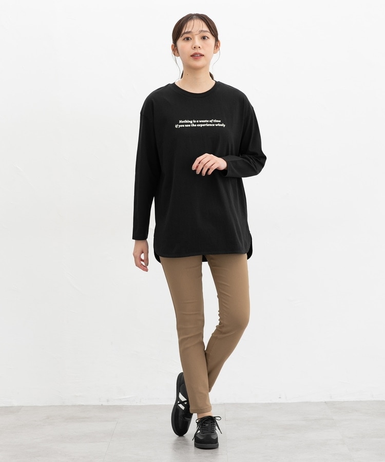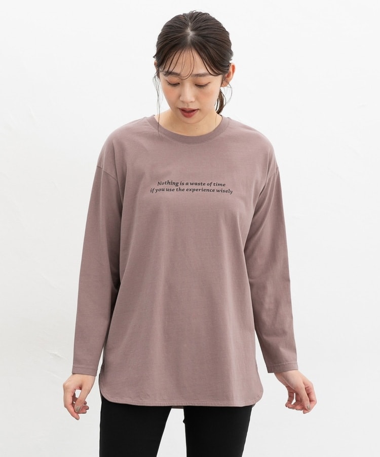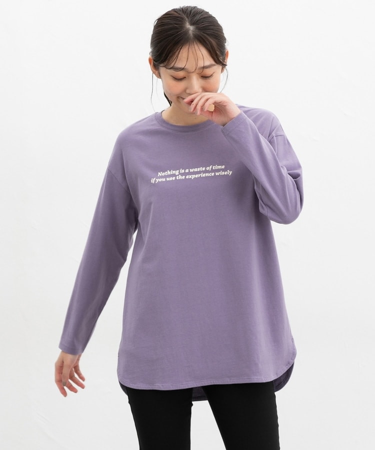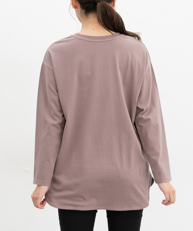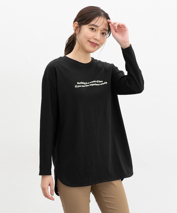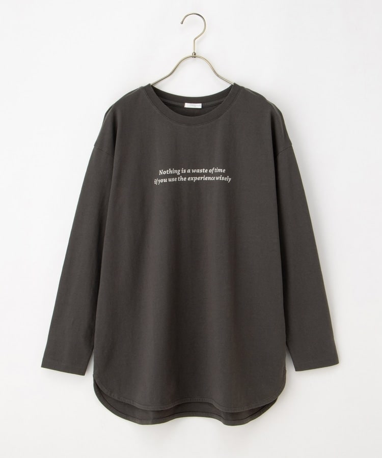 こなれ感のあるラウンド裾とフロントのさりげないロゴプリントがおしゃれなデザイン。
