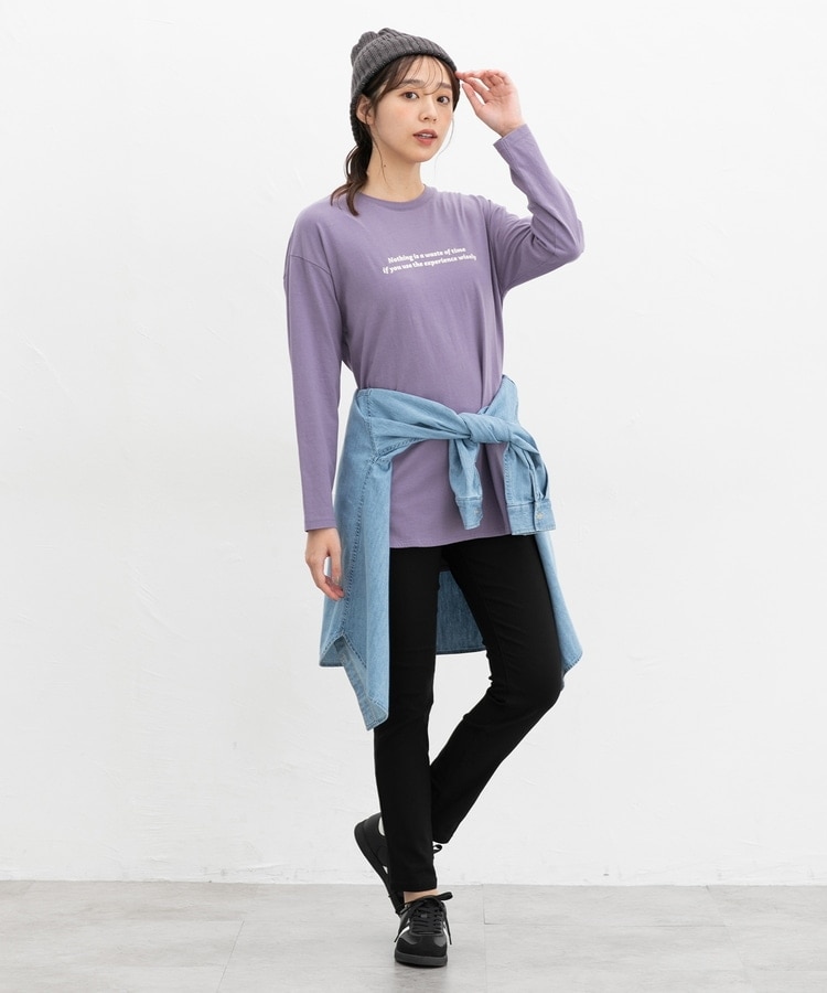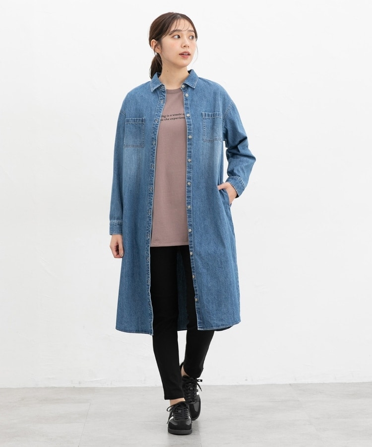 ヒップまですっぽり隠れる丈感のゆったりめシルエットで体型もカバー。