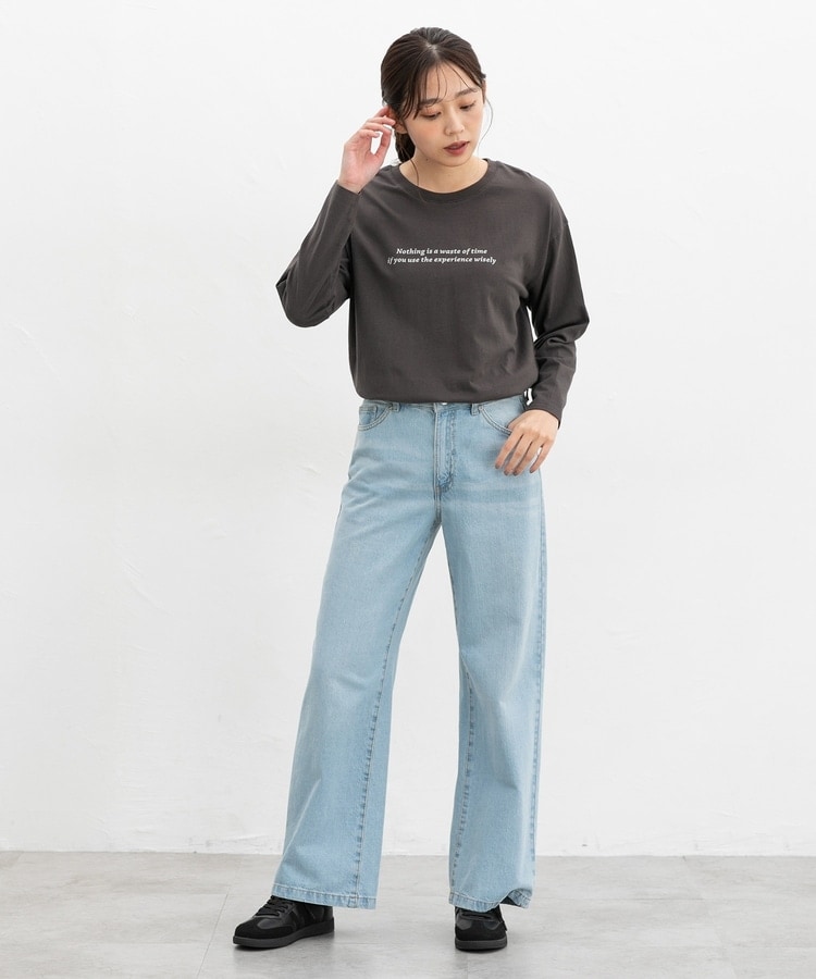 スキニーパンツやイージーストレートパンツなど、カジュアルなボトムスと好相性。