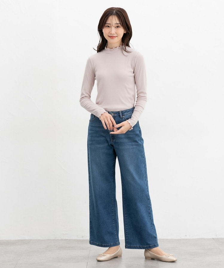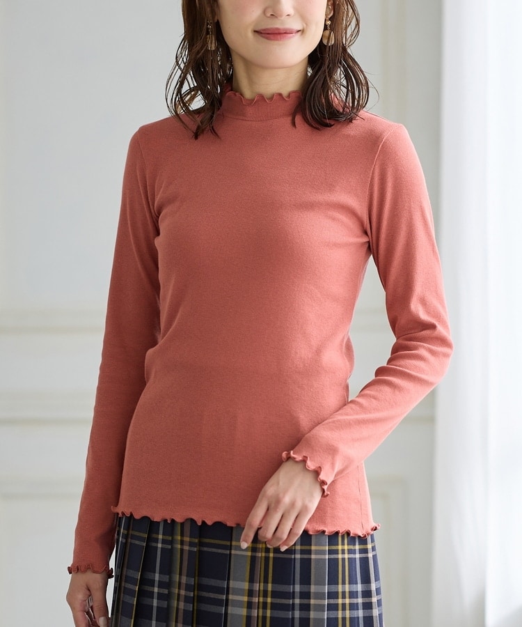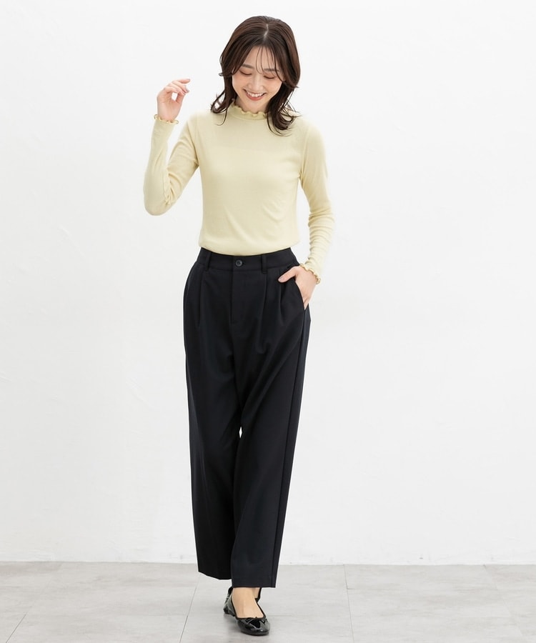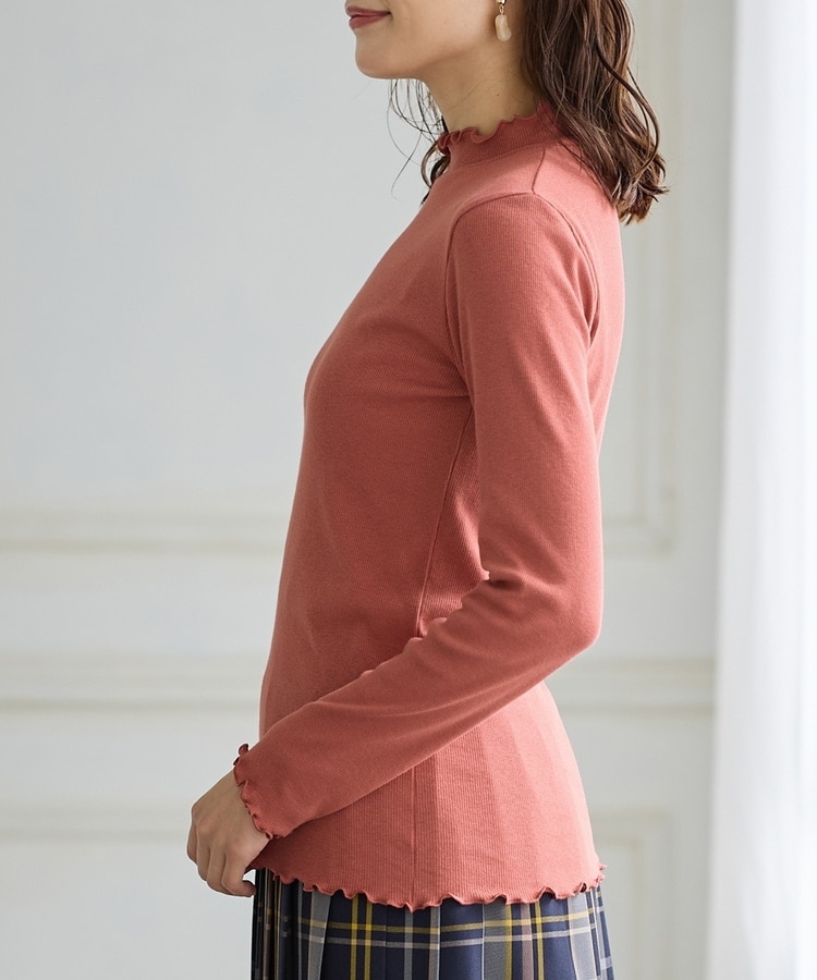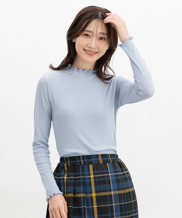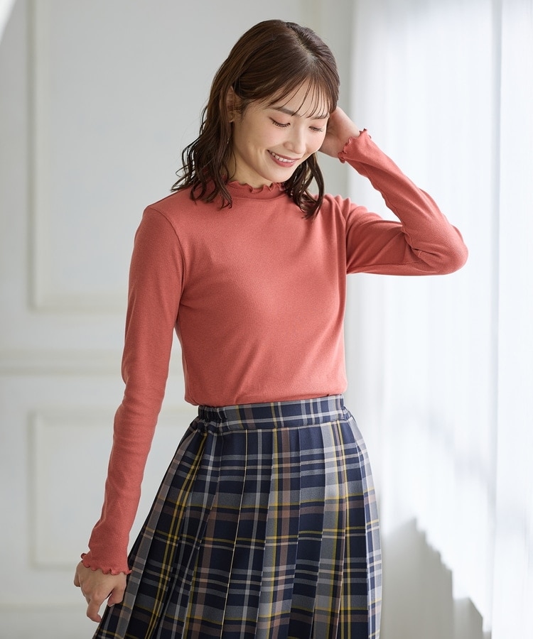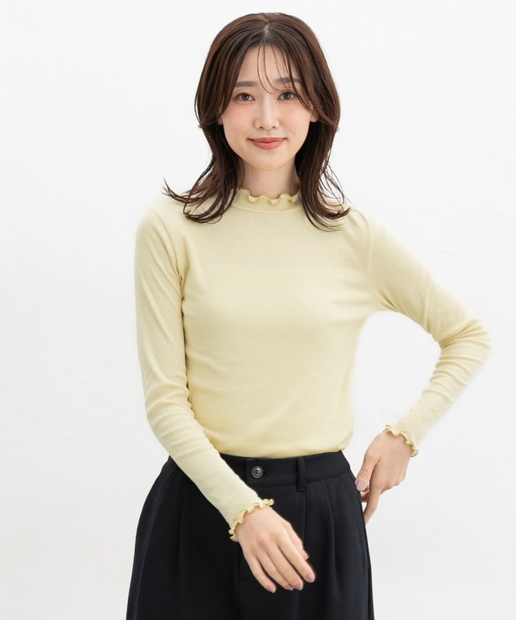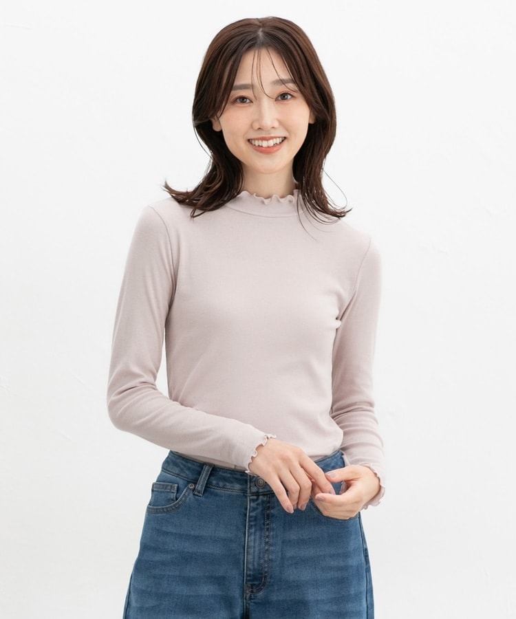 小顔効果も期待できる、程よい高さのプチハイネック。