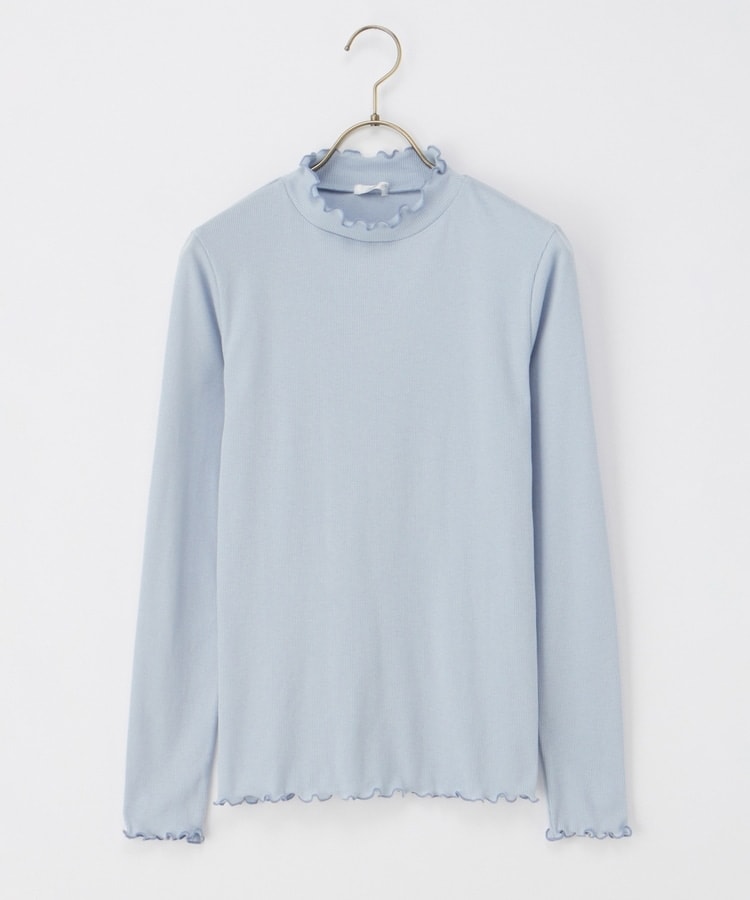 衿ぐり・袖口・裾のメローロックがさりげないアクセントになるシンプルなデザイン。