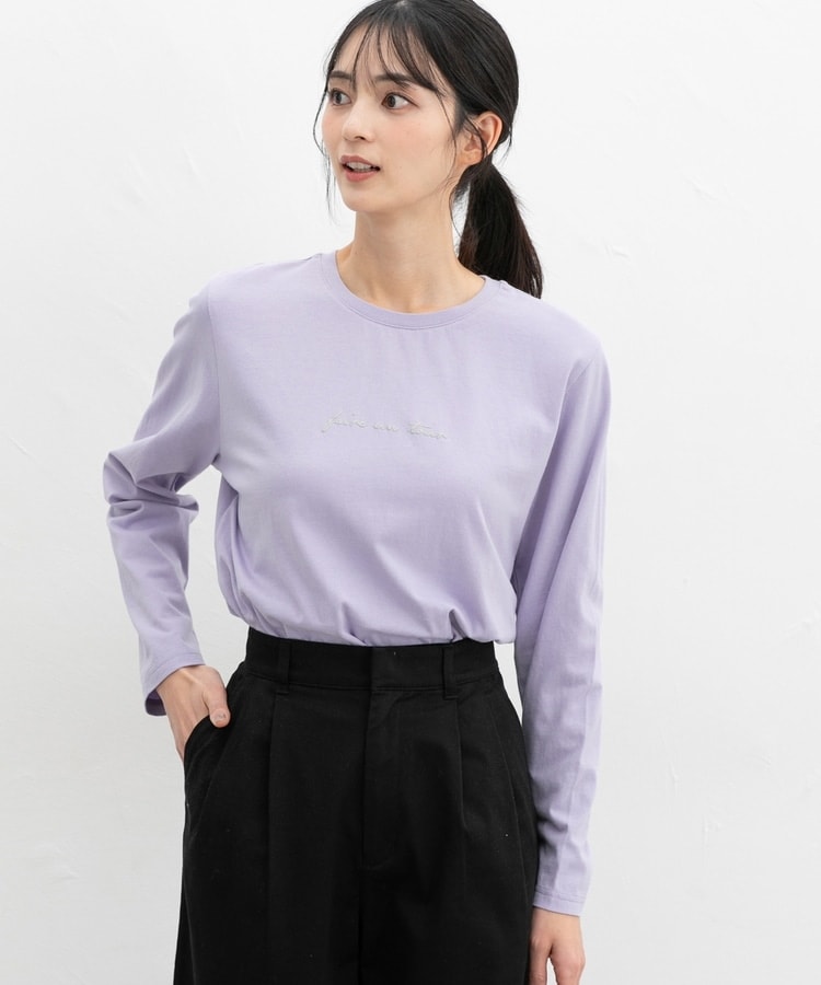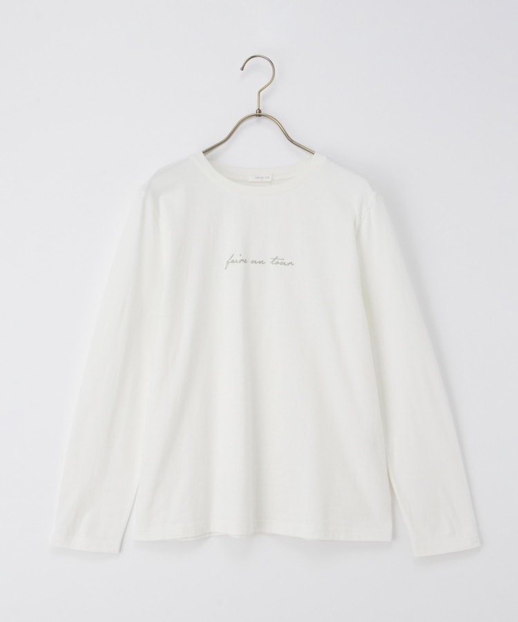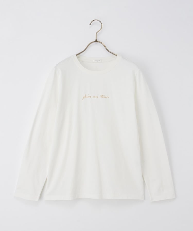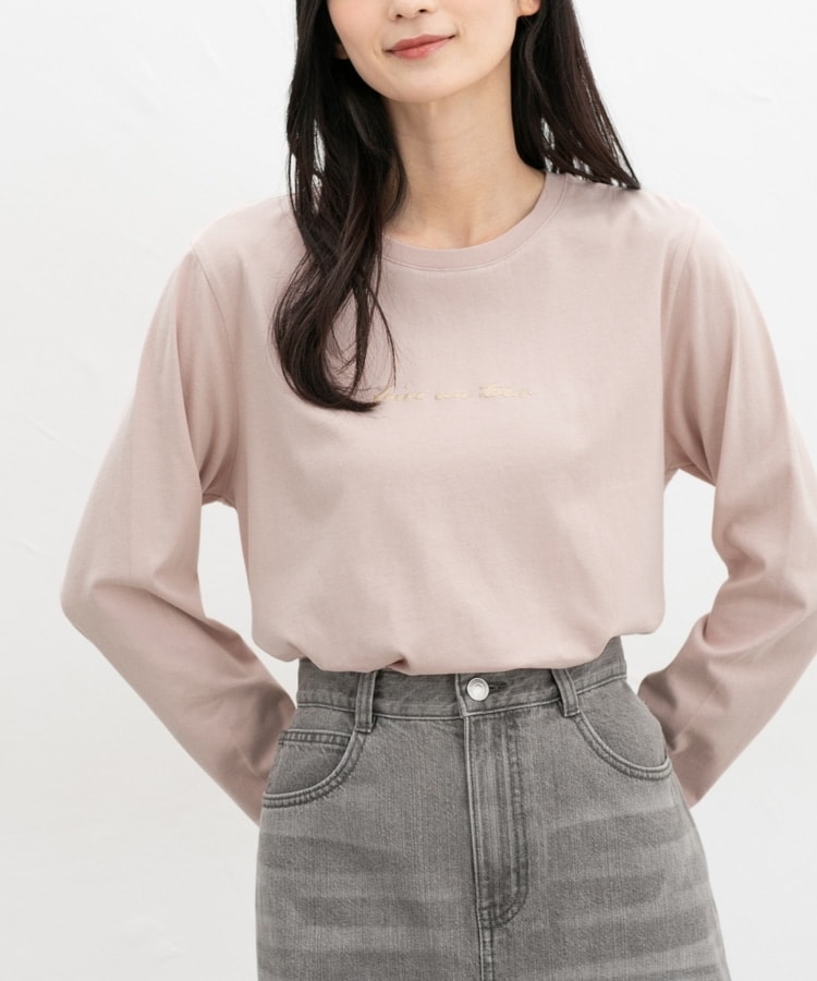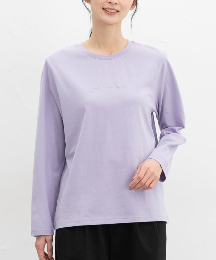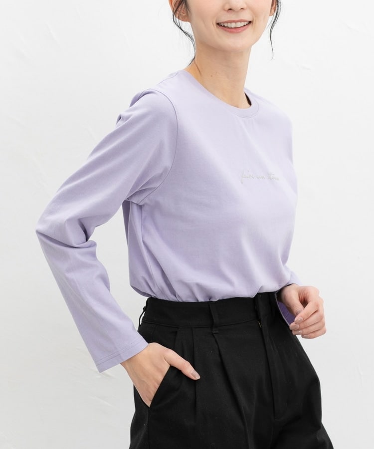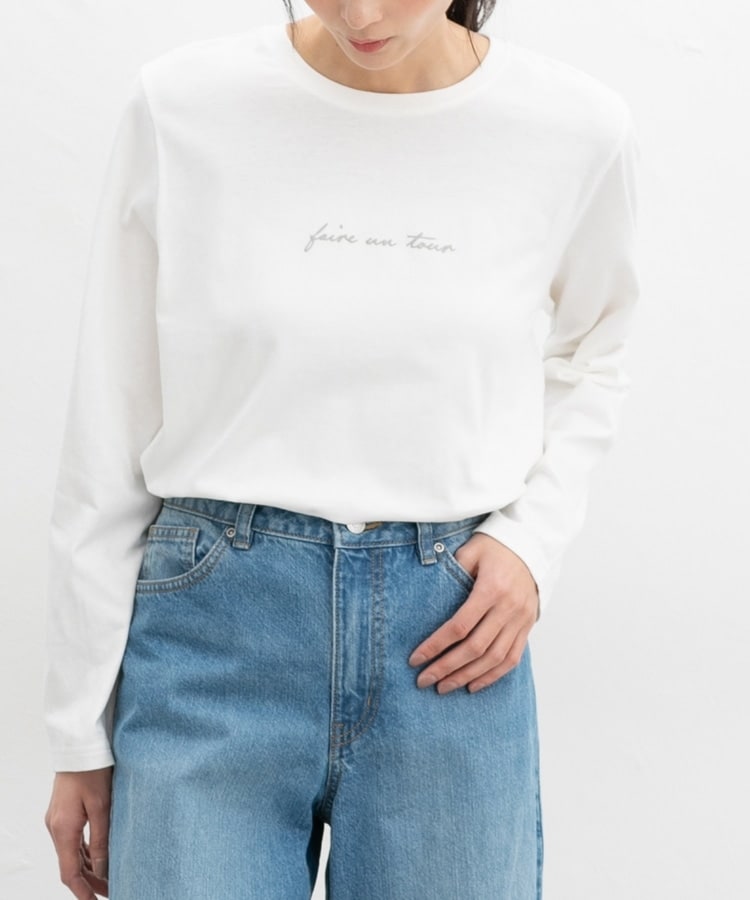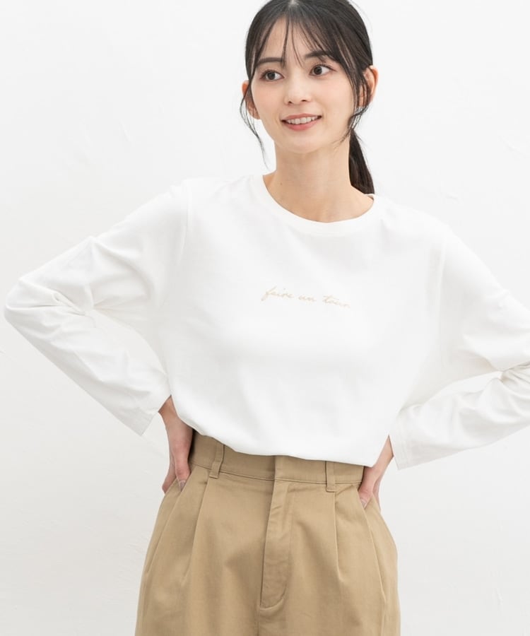 ベーシックなクルーネックで、ゆったりめの幅と腰回りが隠れる丈感。