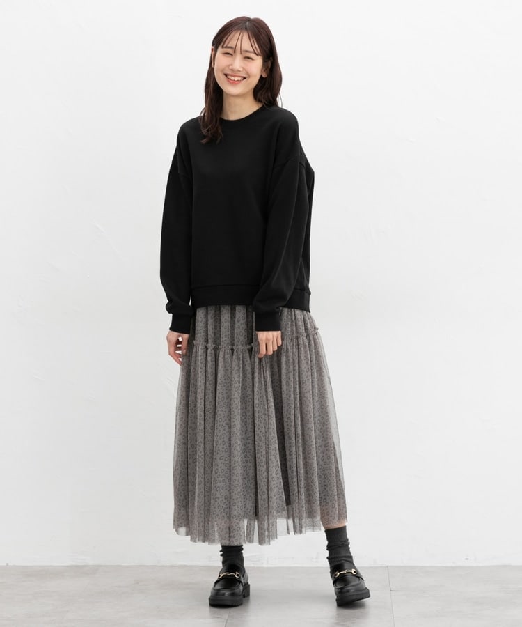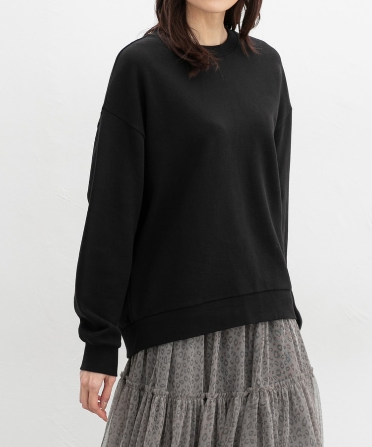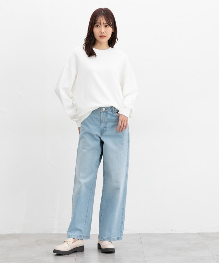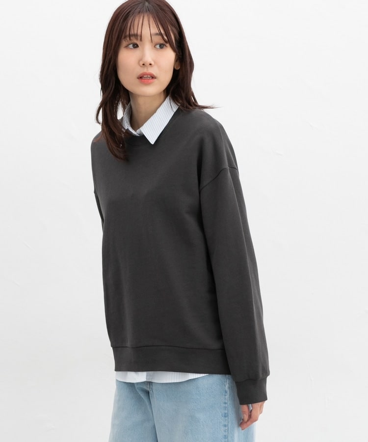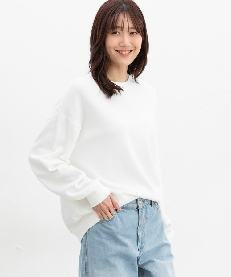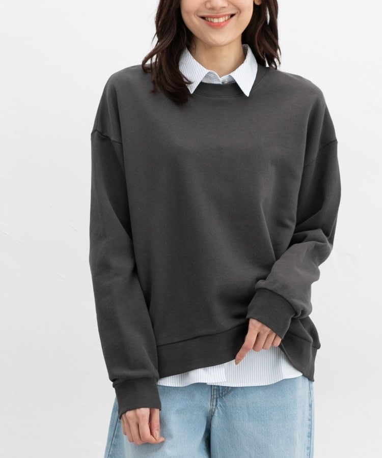 ゆったり幅や前後差のある丈とドロップショルダーで、こなれた印象に。