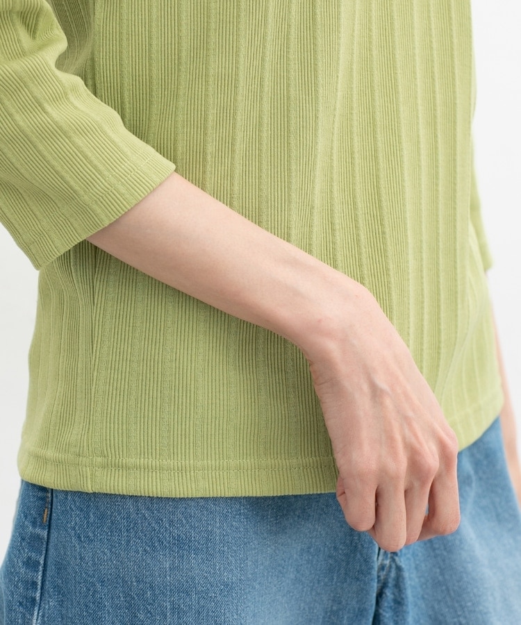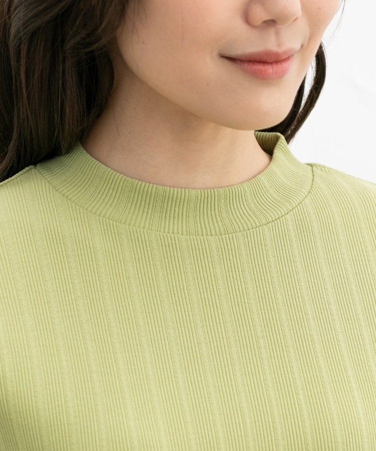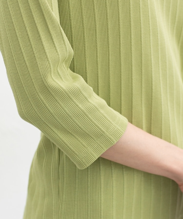 縦目のラインと体にフィットするサイズ感ですっきり細見せが叶うデザイン。