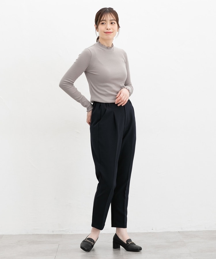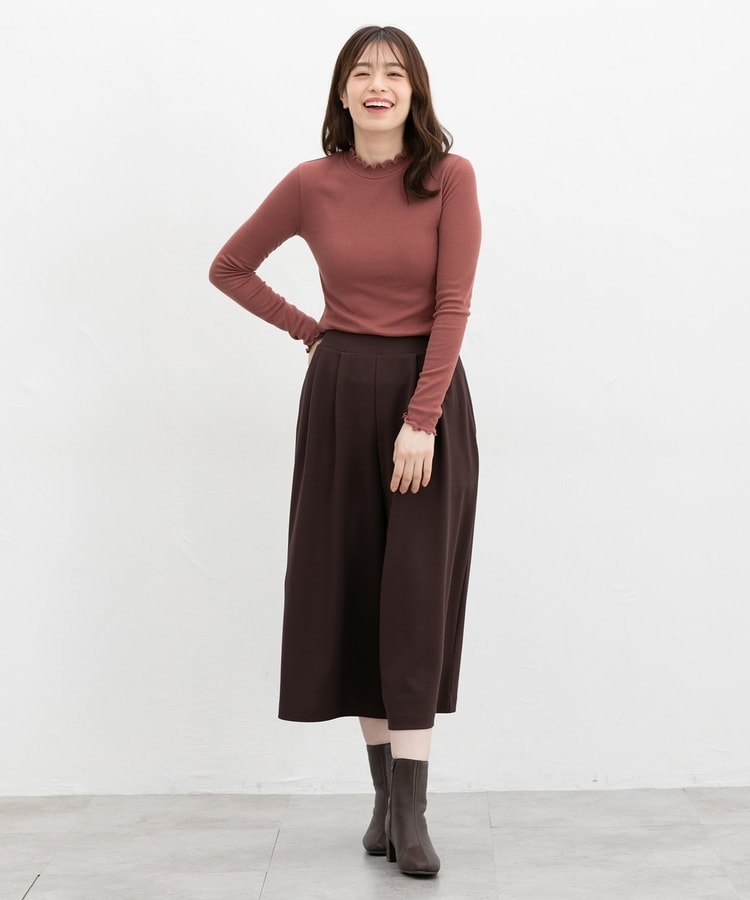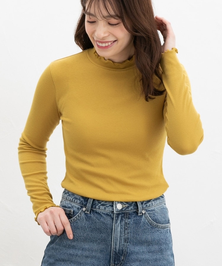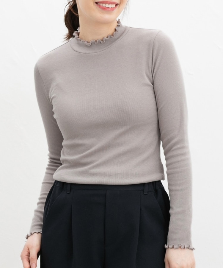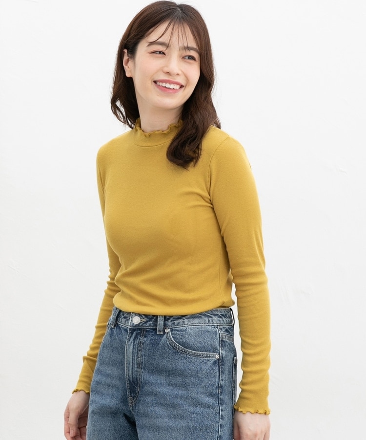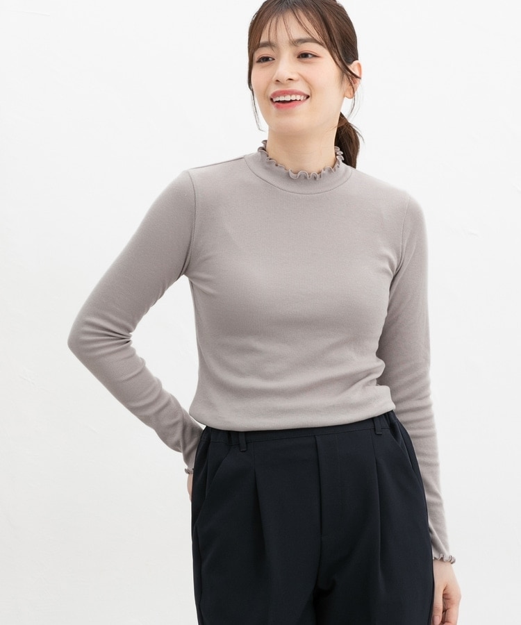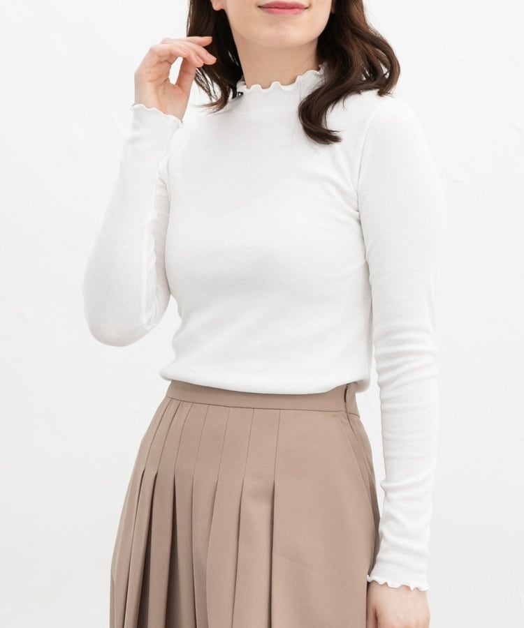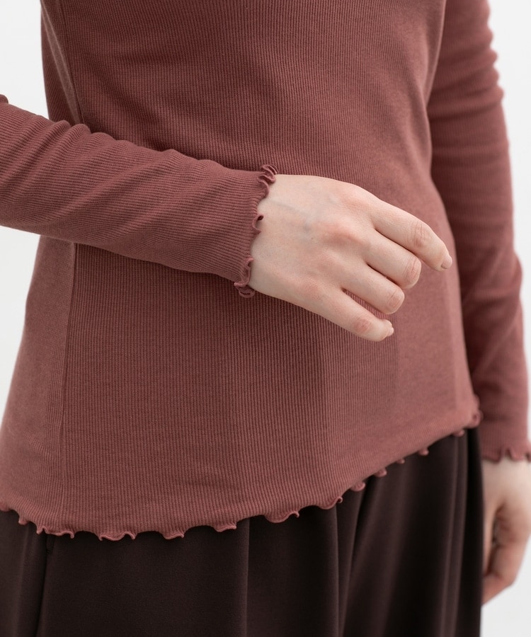 ストレッチの利いた、柔らかな綿混リブ素材。