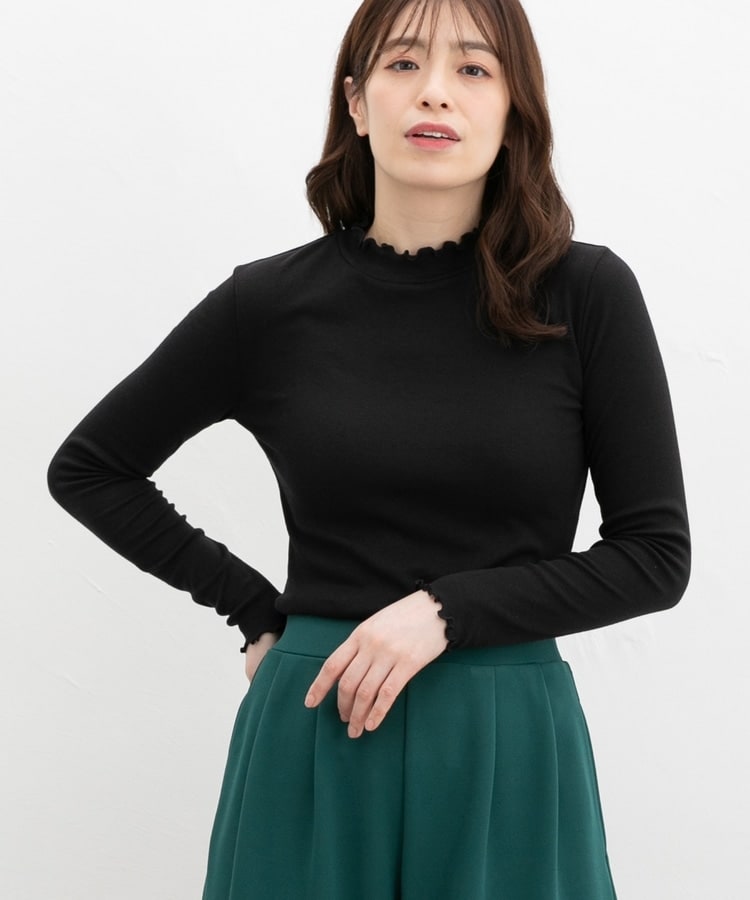 衿ぐり・裾・袖口のメローがおしゃれなシンプルデザイン。