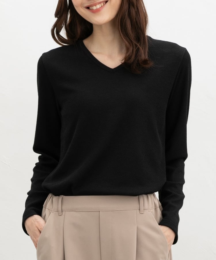 シンプルでスカートにもパンツにも合い、1枚でも、シャツやカーディガンのインナーとしても毎日大活躍。