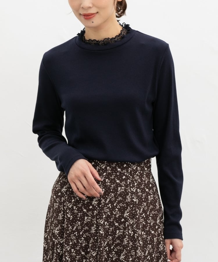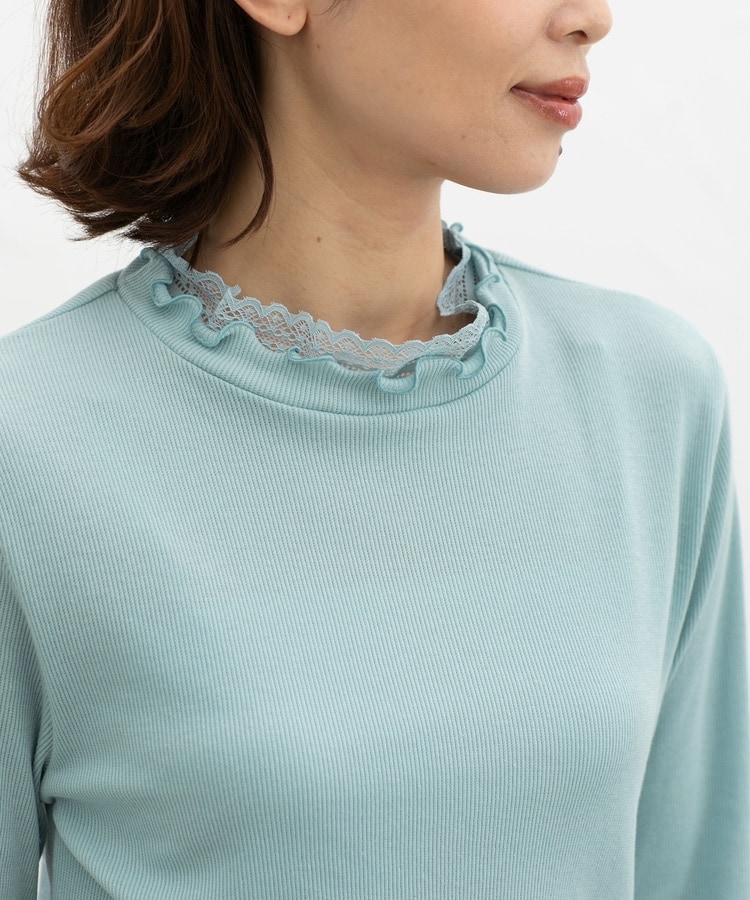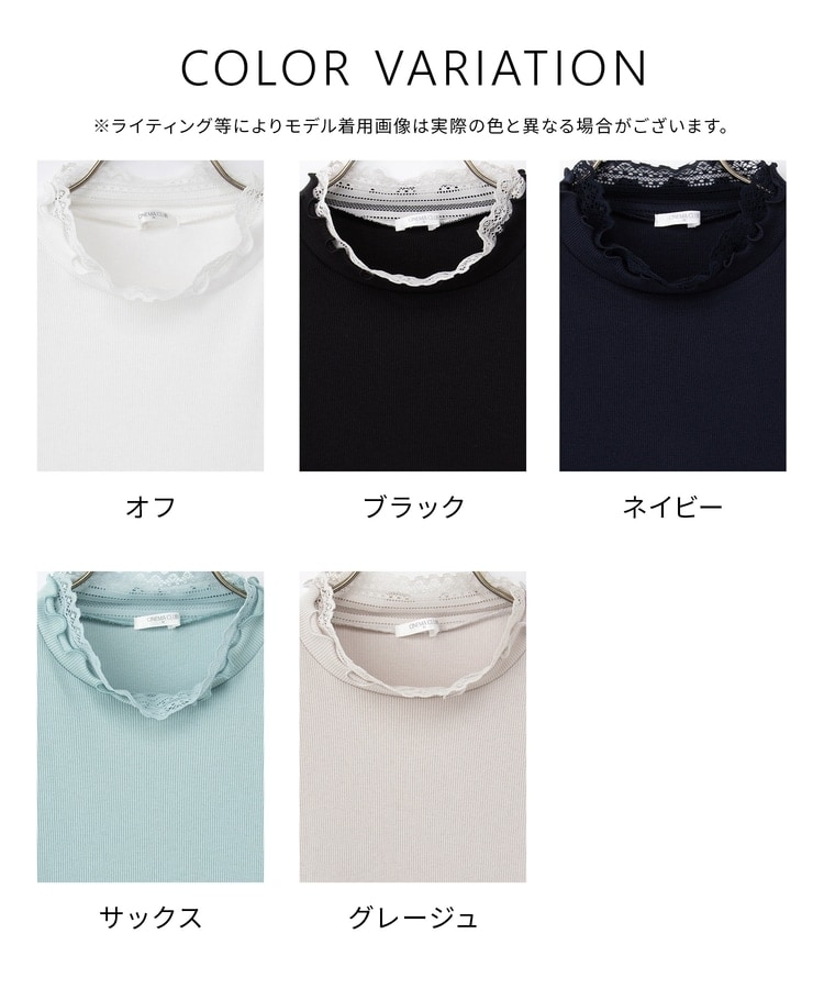 衿ぐりのレース使いがさりげなく華やかなデザイン。