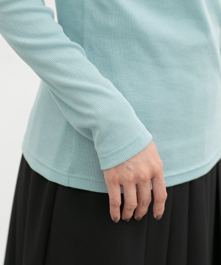 ストレッチの利いた、柔らかで着心地のよい綿混リブ素材。