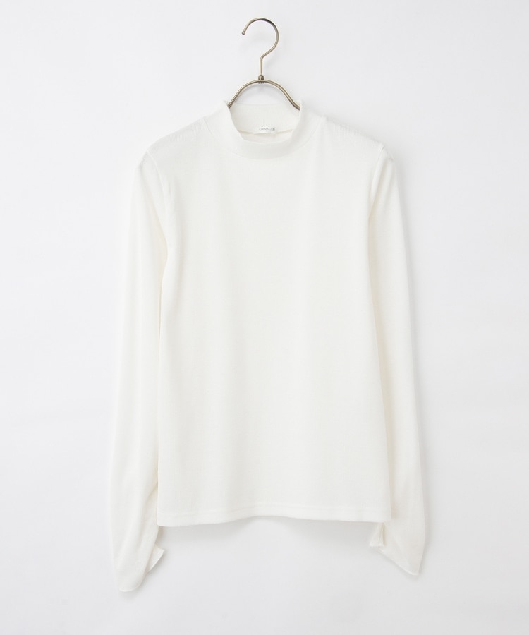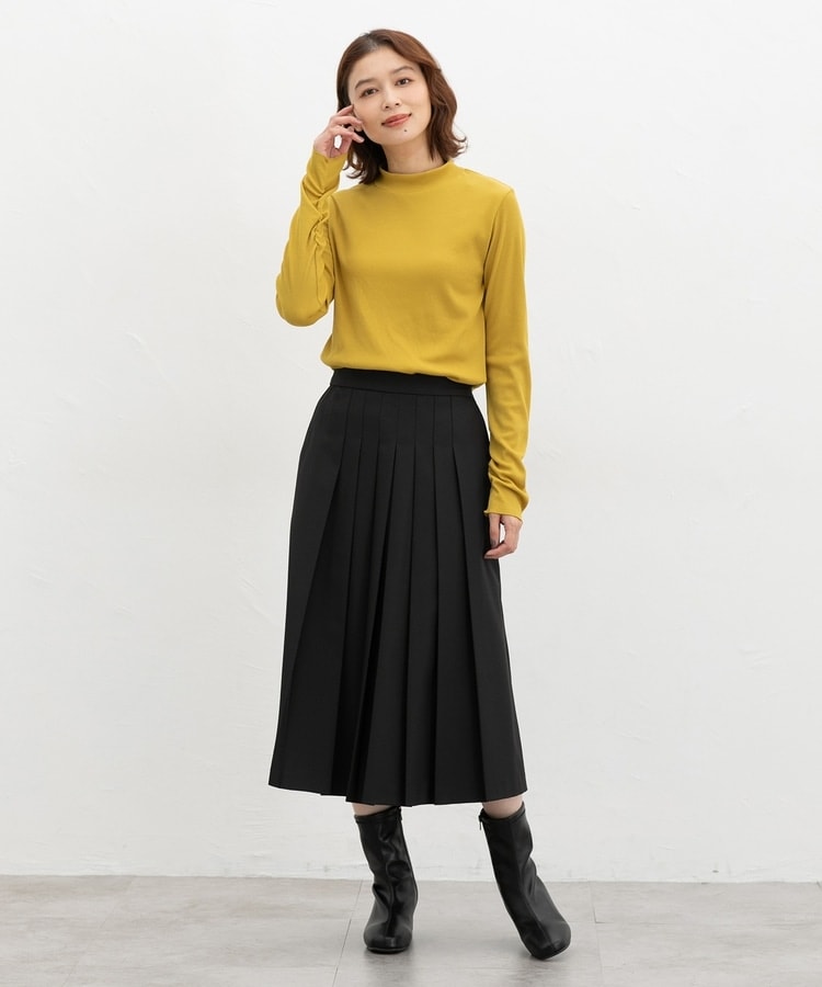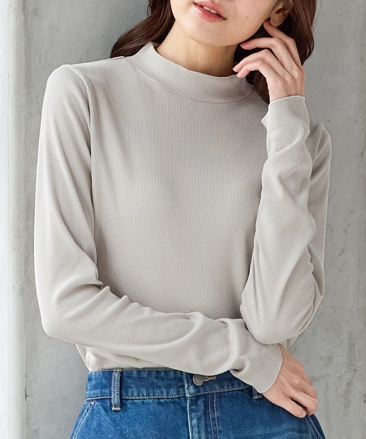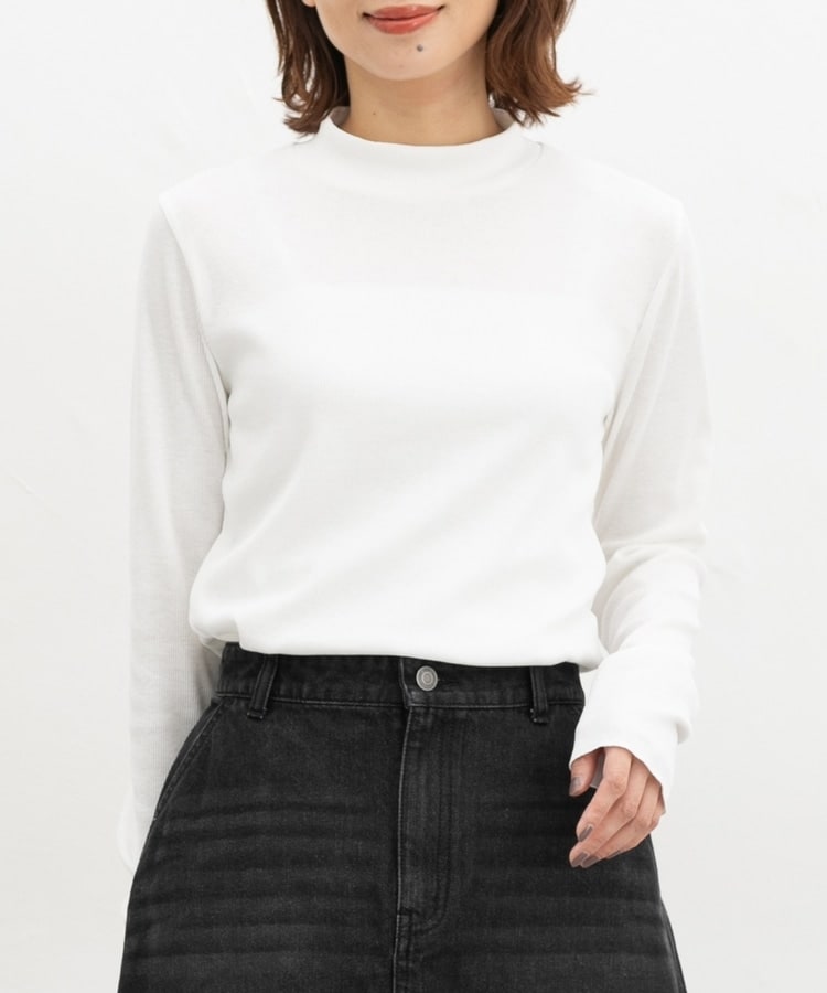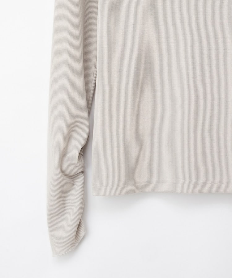 1枚ではもちろん、シャツやカーディガンをレイヤードして袖口からシャーリングをのぞかせると洒落度アップ。