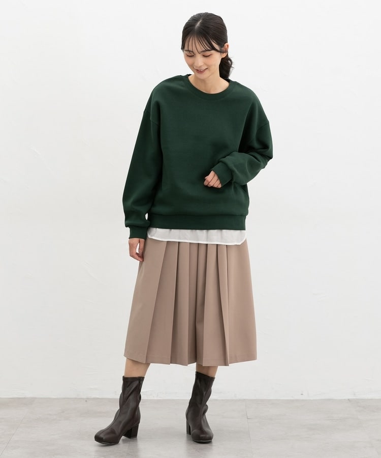 前後差ヘムやドロップショルダーで、こなれた印象に。