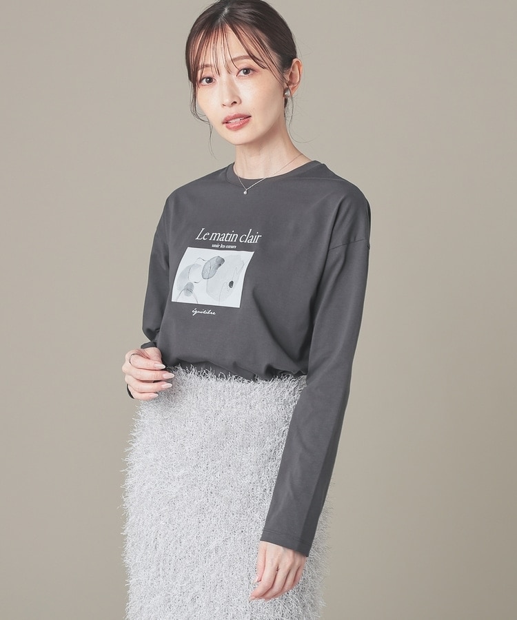 こなれ感のあるアート風フォトプリントがお洒落な、1枚で着映えするデザイン。
