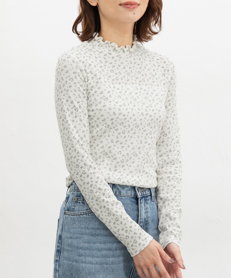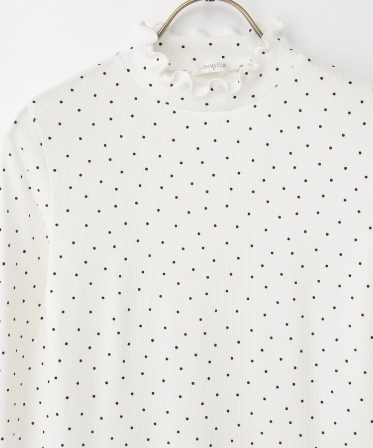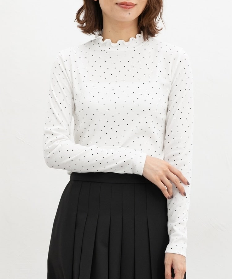 プチハイネックで気になる首元を隠しながらさりげなく上品な印象をプラス。