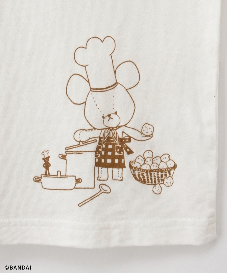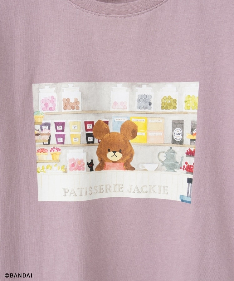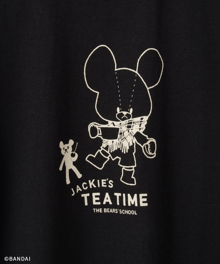 絵本シリーズ「くまのがっこう」の、ジャッキーがスイーツやお茶を楽しむシーンなどを中心にセレクトされた、ワンポイント刺繍やプリントが可愛らしいデザイン。