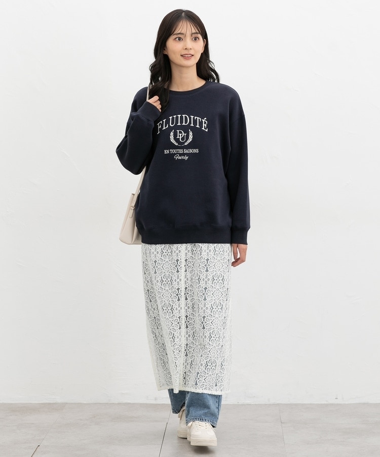 ヒップまで隠れる丈感とドロップショルダーのゆったりシルエットで体型もカバー。