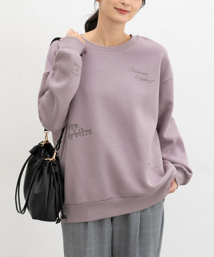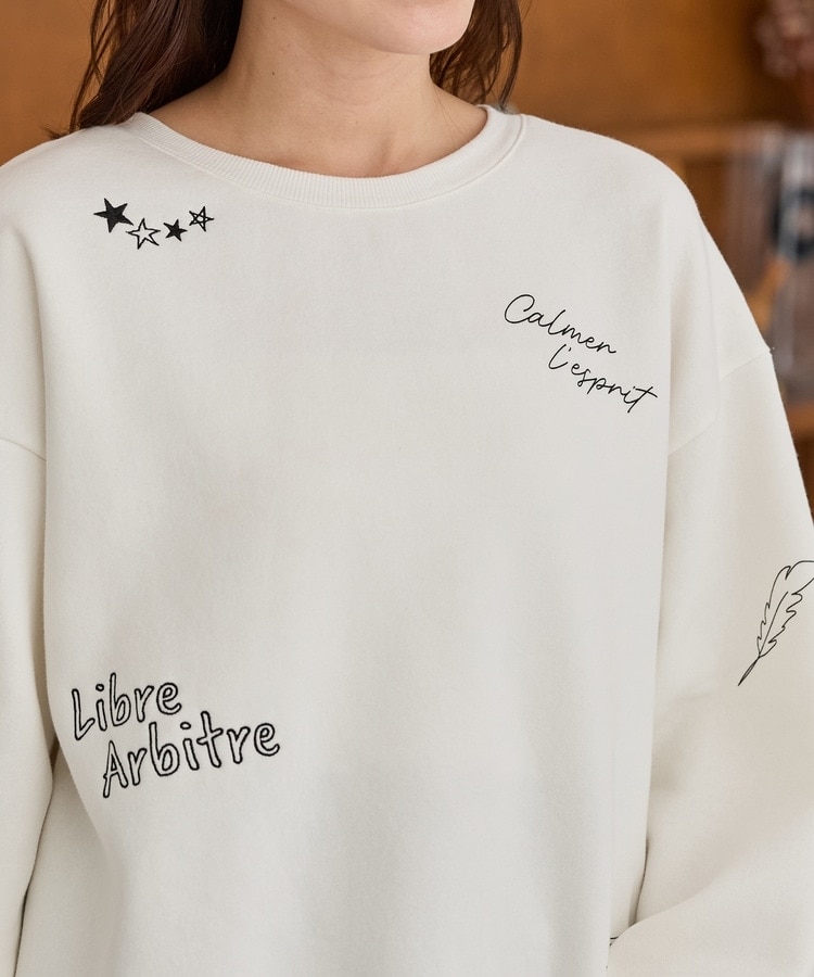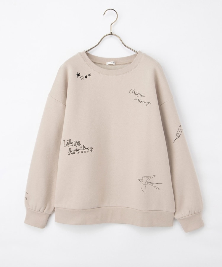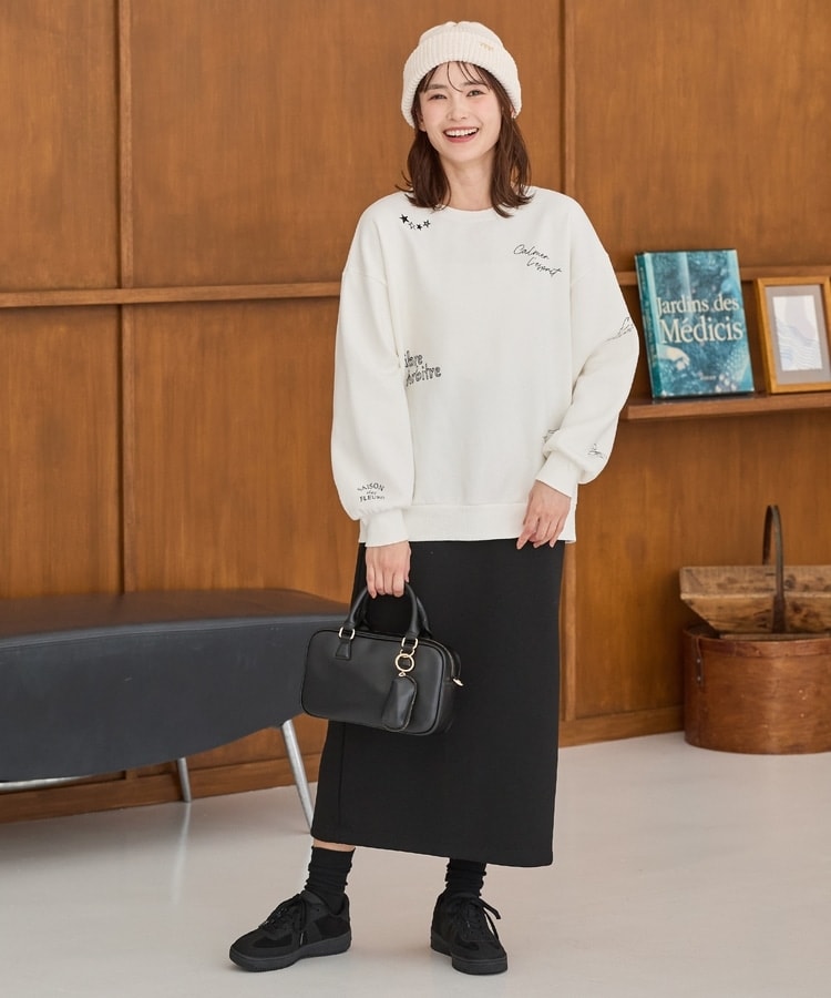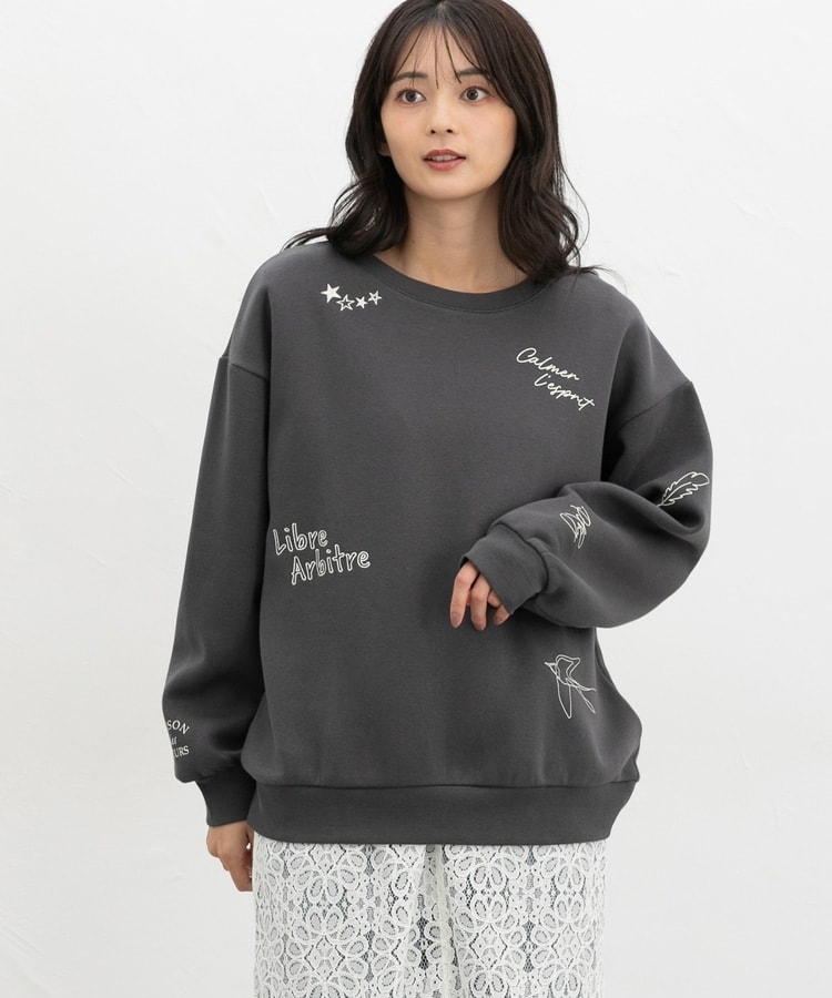 遊び心あふれる落書き風のロゴ刺繍やプリントを全体にちりばめた、今年らしいお洒落なデザイン。